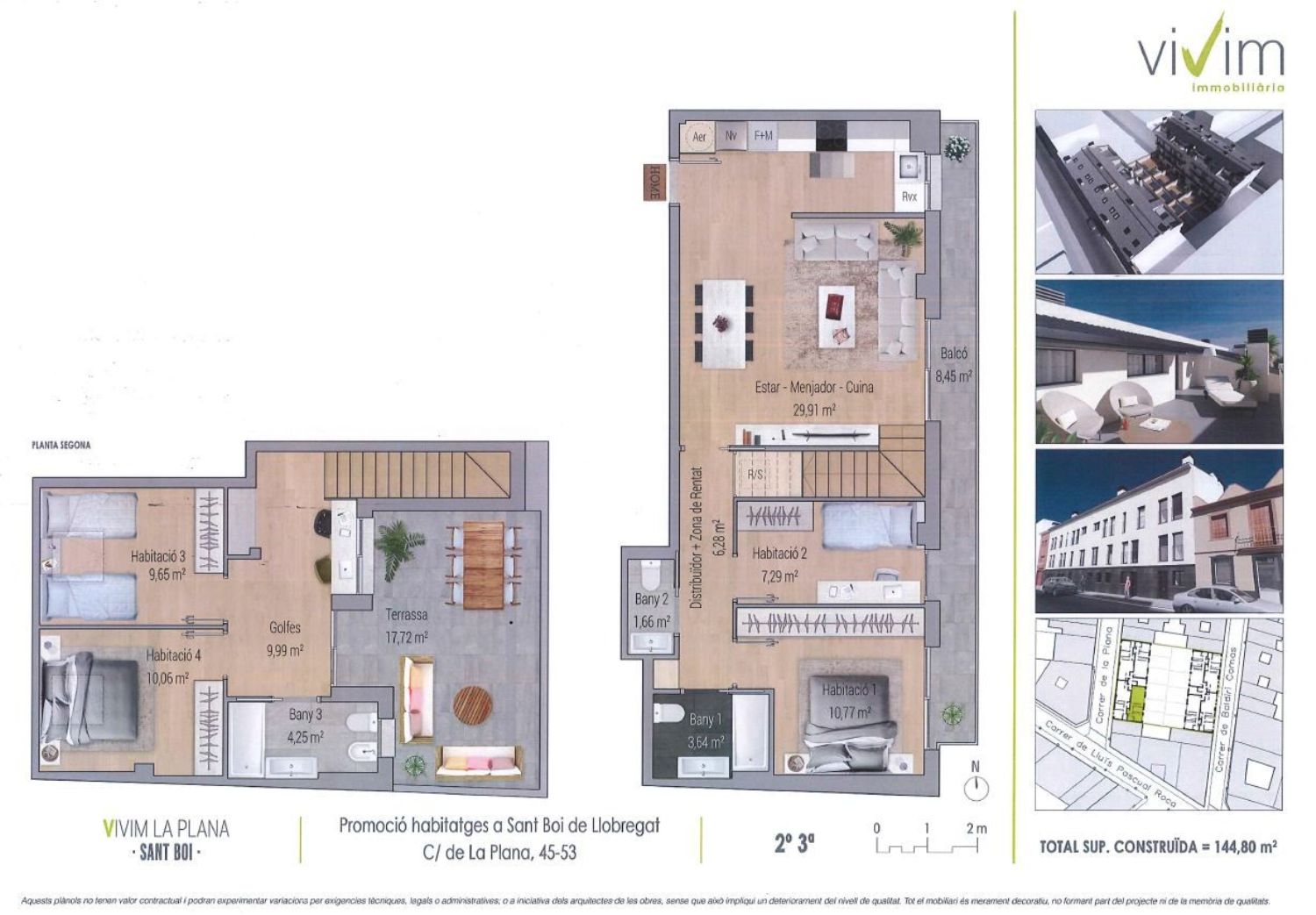 Residencial la Plana, situado en la zona centro de Sant Boi de llobregat, plantas bajas duplex con piscina propia, entrada independiente, áticos duplex con terraza, parquings opcionales. Obra nueva con acabados modernos y sostenibles, domótica, parquet, aerotermia, ventanas aluminio, etc. Ubicada junto a colegios, supermercados, centros deportivos, zona comercial, centros asistenciales, ferrocarril, autobus.