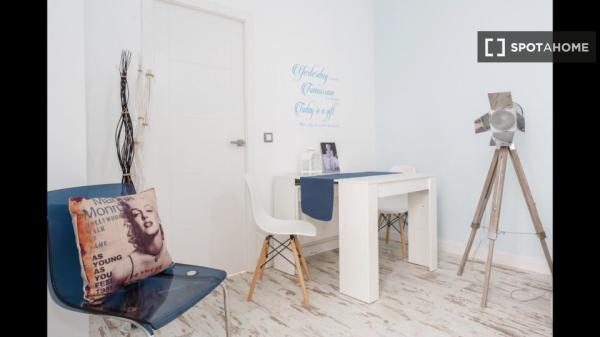 Spotahome vous propose cette charmante chambre dans un appartement de trois chambres en colocation situé à La Viña, Cadix. Cette chambre meublée est équipée de la climatisation centrale pour le chauffage et la climatisation, garantissant un confort optimal toute l'année. L'appartement est équipé d'un chauffe-eau électrique et d'appareils électroménagers modernes tels qu'un sèche-linge, un lave-linge (commun) et une cuisine entièrement équipée avec four. Veuillez noter qu'il est interdit de fumer et que les animaux sont interdits. La chambre dispose également d'un balcon ou d'une terrasse privés pour des moments de détente en plein air. Le Wi-Fi et l'eau sont inclus dans votre séjour, tandis que les frais d'électricité sont gérés en fonction de la consommation et facturés par le propriétaire. Spotahome vérifie soigneusement les propriétaires afin de garantir une location en toute sécurité.
