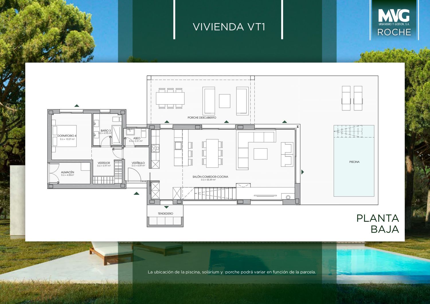La promoción está basada en criterios de arquitectura sostenible con viviendas integradas en un pinar natural, potenciando el concepto de respeto a la naturaleza y al medio ambiente en todos los elementos de diseño que configuran el proyecto. Chalets Individuales ubicados cerca de la playa y rodeados de numerosos campos de golf. Las viviendas cuentan con 4 dormitorios, salón-comedor con la cocina integrada y tendedero exterior, tres baños y un aseo, vestíbulo, almacén, porche descubierto, distribuidos en 2 plantas y con luz natural en todas las estancias. Además, disponen de piscina individual con solárium y aparcamiento para dos coches.Los Chalets Individuales se encuentran en Calle Holanda nº 110-120 dentro de la urbanización ROCHE en el término municipal de Conil de la Frontera (Cádiz) siendo Roche una de las urbanizaciones mas privilegiadas de la Costa de la luz por su ubicación, ya que se encuentra en un paraje natural frente al Océano Atlántico, con playas naturales de fina arena y pequeñas calas. Todo ello abrazado por un bosque de pinos de mas doce millones de metros cuadrados.Para llegar: Autovía A-48, Salida S-15, CN-340, P. K. 16.800 Dirección el Colorado-URB. ROCHE.A escasa distancia se encuentra el Puerto Deportivo y el Puerto pesquero de Conil y una gran oferta de campos de golf (Golf Novo Sancti Petri, Sancti Petri Hills Golf, Golf La Estancia y Golf Campano).Roche nos regala playas de arena fina color oro, temperatura del agua inmejorable y ambiente de auténtica tranquilidad frente a la costa atlántica, con calas intimas donde disfrutar de la limpieza de sus aguas y el aire con olor pino.La playa de Roche, de gran extensión, destaca por las famosas Calas de Roche, (dirección Conil) que son unas bellísimas calas situadas en los acantilados de Roche. Dirección Chiclana tenemos las playas de Novo Sancti Petri y la Barrosa en las que podemos disfrutar de unas puestas de sol únicas.