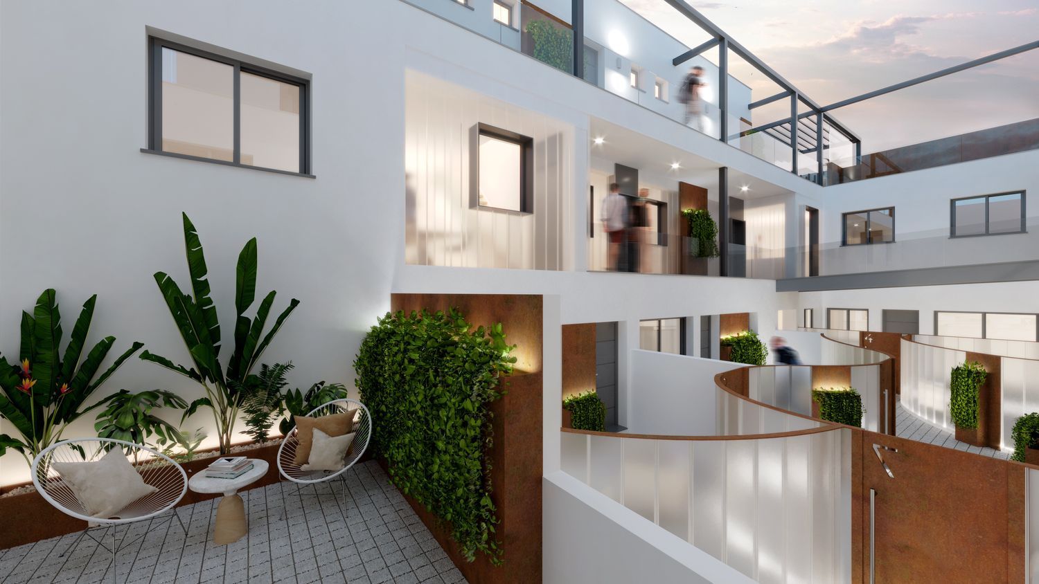 Ces résidences s'illustrent par un design avant-gardiste, alliant des finitions de haute qualité à une construction irréprochable. Les futurs résidents auront le choix entre des appartements en rez-de-chaussée ou des penthouses en duplex, chacun avec l'option de patios ou de terrasses privatives. Un solarium commun avec piscine ajoute à cette offre exceptionnelle, tandis que des places de parking et des espaces de rangement supplémentaires sont disponibles selon les besoins. Le tout dans une fourchette de prix de 238 000 €, un investissement judicieux pour le confort qu'elles offrent.