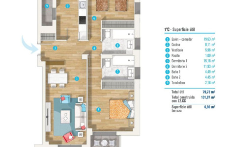 Fantástico proyecto residencial plurifamiliar.La Urbanización La Finca del Mansín consta de cinco edificios con un total de 77 viviendas colectivas (planta baja más dos alturas), además de 6 exclusivas viviendas distribuidas en tres chalets pareados dos a dos. En este momento ponemos a la venta una primera fase que consta de los dos edificios de viviendas colectivas situados más al oeste de la urbanización, junto con los chalets pareados.Será una urbanización cerrada para disfrute de toda la familia sobre una parcela de 9.696, 47m2, con 7.500 m2 de zonas verdes, piscina, pista de pádel y local social comunitario, para uso exclusivo de los vecinos de la urbanización.Características generales:- Maravilloso piso de 100,73 m2 construidos.- Consta de 2 habitaciones y 2 baños.- Calificación energética A.- Fachada ventilada. - Sistema de calefacción por suelo radiante que distribuye homogéneamente el calor, esto lo hace aún más eficiente y aumenta el confort de la estancia. - Todas ellas se entregarán con el frente de cocina amueblado y equipado con placa de vitrocerámica o inducción, horno eléctrico, campana extractora, nevera, lavadora y lavavajillas. - Terraza de una superficie construida de 6,6 m2.Las viviendas están proyectadas con la máxima calificación energética que existe – letra A – con fachada ventilada. Para ello incorporan las soluciones técnicas más modernas del mercado (aerotermia), logrando, entre otras mejoras, una gran eficiencia acústica, térmica y de energía Viviendas de alta calidad en el mejor entorno posible.Cada vivienda dispone de dos plazas de garaje y un trastero.