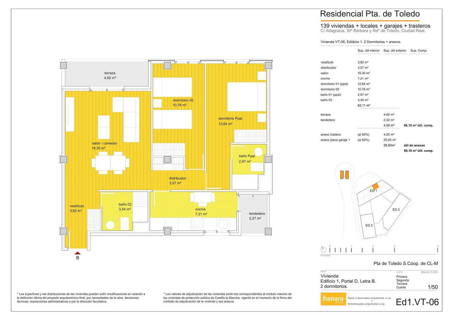 “Puerta de Toledo” es un nuevo residencial en régimen de Cooperativa de Viviendas de Precio Tasado de póxima construcción.El residencial está situado en la Puerta de Toledo, en los solares de las antiguas viviendas militares, ocupando la manzana completa, rodeada por las calles Altagracia, Ronda de Toledo, Santa Bárbara y Puerta de Toledo. Enfrentada al monumento de la Puerta de Toledo.El desarrollo de la promoción será en la ubicación más emblemática dentro de rondas de Ciudad Real. Situado a 5 minutos andando de la Plaza Mayor, con todo tipo de comunicaciones, transporte público, servicios, dotaciones, comercio, parques, universidad, y parking público y privado en sus proximidades, en una Zona urbana históricamente consolidada.Puerta de Toledo es una urbanización privada, con piscinas comunitarias, zona de juegos infantiles, zonas verdes ajardinadas, sala polivalente, vestuarios-aseos comunitarios. Se desarrollan 139 viviendas y un gran local comercial en los tres edificios que forman el complejo. Además cuenta con una planta sótano dedicada a garaje aparcamiento, instalaciones y trasteros para cada una de las viviendas, y un sótano -2 también destinado a aparcamiento público. Las plazas de aparcamiento dispondrán (a petición) de suministro energético individualizado para cada plaza en previsión de la próxima utilización de vehículos eléctricos. Todas estas características convierten a esta urbanización residencial en un lugar sostenible energéticamente, de altos valores de habitabilidad y medioambientales por medio de las zonas verdes integradas y su profunda relación con las viviendas, las energías renovables empleadas en las instalaciones y la previsión a futuro de las mismas.Las viviendas van de 2 a 4 dormitorios, siendo la tipología predominante de 2 dormitorios con amplio salón, cocina, terraza y dos baños completos, siendo todas las viviendas totalmente exteriores y con terraza lo que las da una gran luminosidad a lo largo del día y mayor confort debido a la amplitud de todas las estancias, baño en suite en el dormitorio principal, disponen de ventilación cruzada y terraza exterior. Las viviendas en la planta primera disponen de espacio libre ajardinado privado. En la quinta planta se ubican los áticos de 2, 3 y 4 dormitorios, con amplísimas terrazas hasta de 70 m² a lo largo de toda la fachada exterior del edificio. Todas las viviendas incluyen plaza de garaje y trastero dentro del precio.El equipamiento de las viviendas se define en la memoria de calidades, en la que se describen calefacción por suelo radiante, preinstalación de aire acondicionado, lineal de aopoyo en cocina, cuartos de baño con lavabo, bañera / ducha, inodoro, y lavabo. Todas estas instalaciones, junto con la calidad de la edificación, producen una Calificación Energética AExiste la posibilidad de personalización de la distribución de la vivienda en la fase inicial del proyecto.Desde la idea inicial del estudio de arquitectura se ha pretendido realizar una vivienda muy ligada con el exterior y con las zonas verdes de la comunidad, donde la amplitud de espacios y la luminosidad tomen el protagonismo de la vivienda, pensando la vivienda desde el interior, con unas superficies de las estancias mayores de las convencionales, con flexibilidad y versatilidad de utilización, con posibilidades de habitabilidad extendidas como zonas de almacenaje, pre instalación de red de internet (Tv por internet en salón y dormitorio principal) en la vivienda para adecuarlas a los nuevos tipos de vida digital del futuro próximo. Donde se ofrezca una mejor experiencia de vida dentro de la vivienda.
