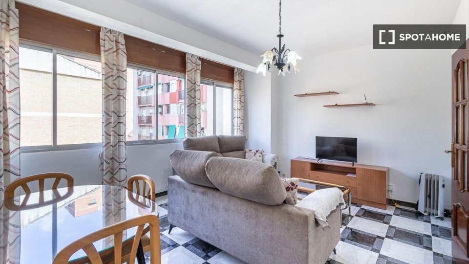 Bienvenue dans cet appartement meublé de 3 chambres situé dans le quartier de Campo Verde à Grenade. Il offre les commodités nécessaires à un séjour confortable, notamment un intérieur meublé et une cuisine équipée. Le chauffage est assuré par des unités individuelles électriques et l'eau chaude est fournie au gaz naturel. Toutes les charges (électricité, gaz, eau et Wi-Fi) sont comprises dans le loyer mensuel. Il est interdit de fumer et les animaux sont interdits. Spotahome s'assure que tous les propriétaires sont soumis à une procédure de vérification rigoureuse.