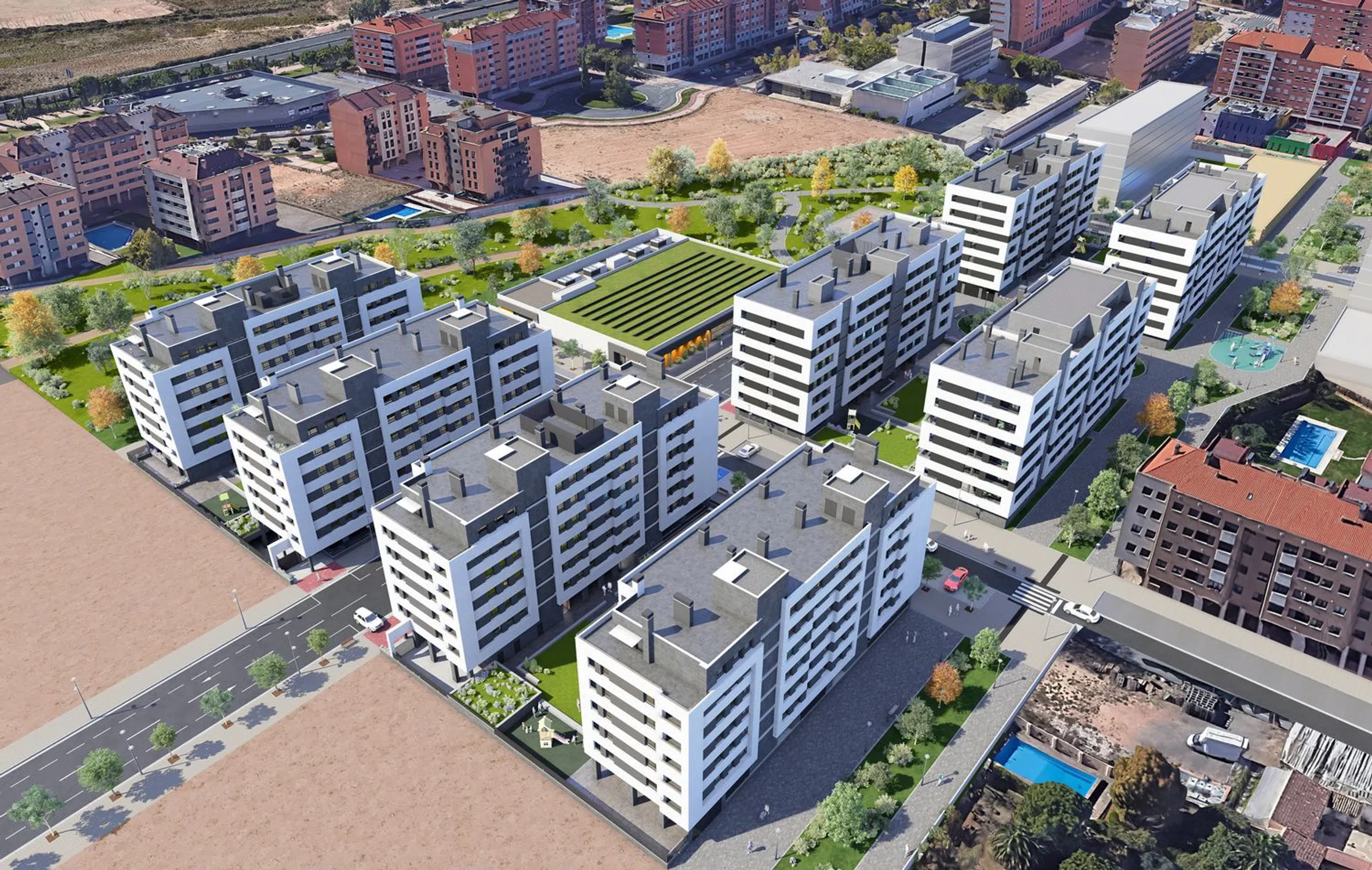 ¡Fase 1, 2 y 3 vendidas! Iniciamos la comercialización de la fase 4. Próxima construcción de viviendas de 2, 3 y 4 dormitorios, con amplias terrazas, y excelentes aislamientos térmicos y acústicos, calefacción mediante suelo radiante y refrigeración mediante suelo refrescante, cocinas totalmente equipadas con marcas de primera calidad, armarios empotrados revestidos y amplias zonas verdes con piscina y sala comunitaria. Un nuevo desarrollo inmobiliario entre Avda. de Burgos y Avda. Manuel de Falla, rodeado de todo tipo de servicios; colegio, supermercados, donde se crearán 18.000 m2 de zonas verdes y una nueva zona comercial y dotacional. Más información en Calle Maria Zambrano nº11 Bajo - 1ºC en Logroño.