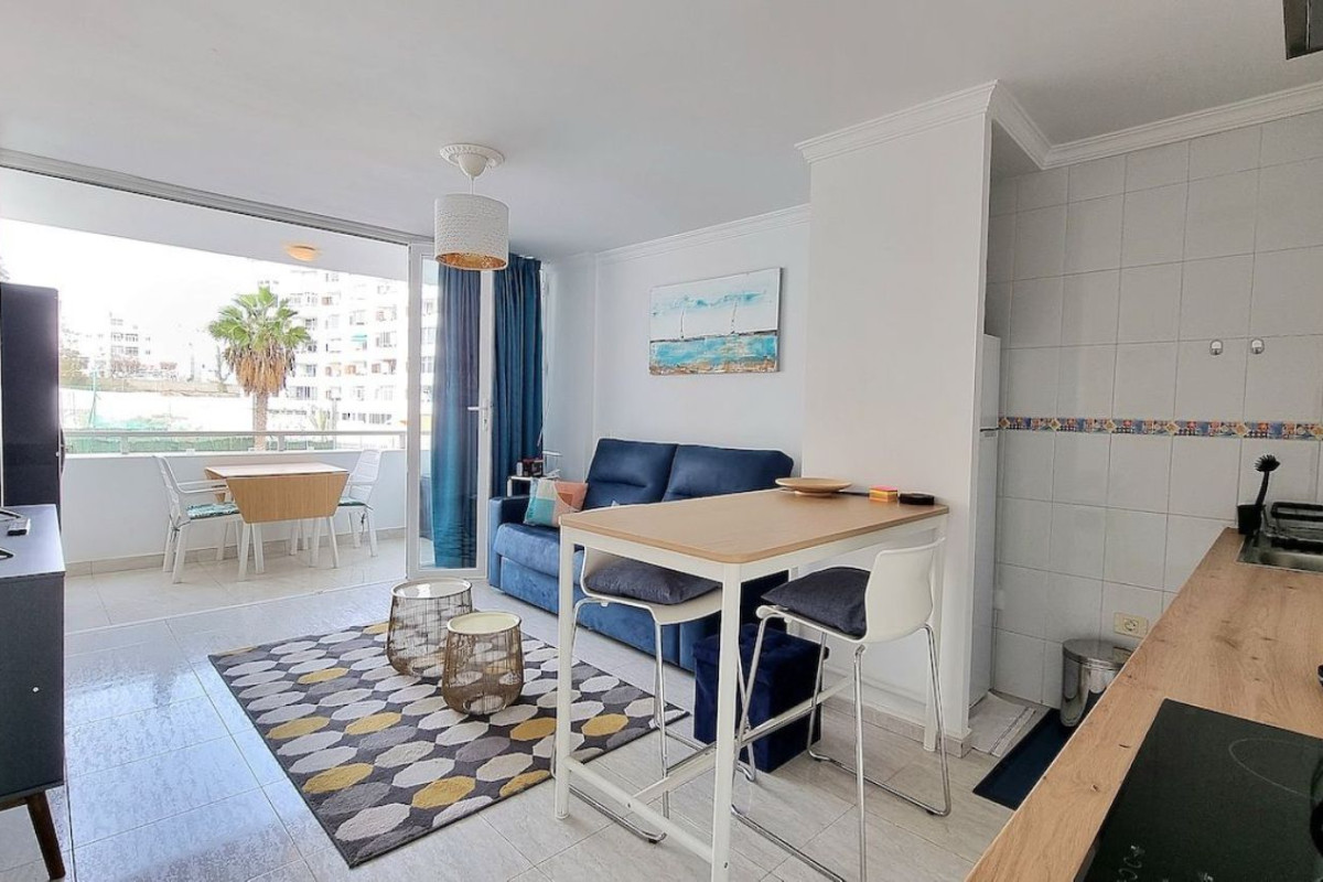 Apartamento en venta en excelente zona de Playa del Inglés, Gran Canaria.¿Estás soñando con tener una propiedad en Gran Canaria?Esta es la solución para ti.Continúa leyendo, porque esta vivienda seguro que te interesa.Alrededores:Cerca a: 15 minutos a pie del mar y de la playa, 5 minutos a pie del centro comercial Yumbo y otros centros comerciales, bares, restaurantes, supermercados, farmacia, oficina de correos, alquiler de coches/motos/bicicletas, colegios, y mucho más.Características:En óptimo estado. En la primera planta con ascensores. Superficie de 50 metros cuadrados.Consta de: un precioso balcón equipado ideal para pasar agradables momentos al aire libre y disfrutar del excelente clima de esta zona durante todo el año, salón con cocina americana, dormitorio doble con armario empotrado, baño.Comunidad: 50,00 euros al mes.Complejo sin explotación turística.El complejo cuenta con 304 unidades, dos piscinas, un amplio aparcamiento exterior comunitario, restaurantes, bares y otro tipo de actividades comerciales.Llama ahora tu Agente Unico para organizar una visita. No lo dejes para mañana.(Nota: los datos expuestos pueden estar sujetos a errores u omisiones involuntarias).