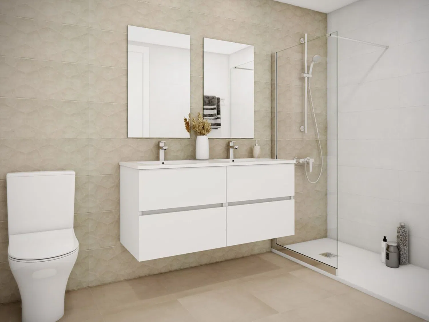 Chacune des maisons dispose de deux places de parking en sous-sol, connectées directement avec les intérieurs. La parcelle, positionnée en hauteur, offre une vue panoramique sur les environs. Les maisons entourent les zones communes, avec des salons orientés vers leurs jardins privés pour maximiser la confidentialité. Conçues sur trois niveaux (rez-de-chaussée, premier étage et sous-sol), elles offrent de grands espaces adaptés à la vie en famille. Le sous-sol comprend une vaste salle connectée à une terrasse anglaise de plus de 18 m², permettant une abondance de lumière naturelle, et un accès direct au stationnement. Le rez-de-chaussée ouvre sur le jardin privé et les zones communes, avec une cuisine équipée, un salon de plus de 36 m² avec vue sur le jardin, une salle de bain et un bureau ou chambre. Le premier étage abrite quatre chambres, dont une suite parentale spacieuse avec une grande surface de rangement, ainsi que trois autres chambres doubles et une salle de bain complète.