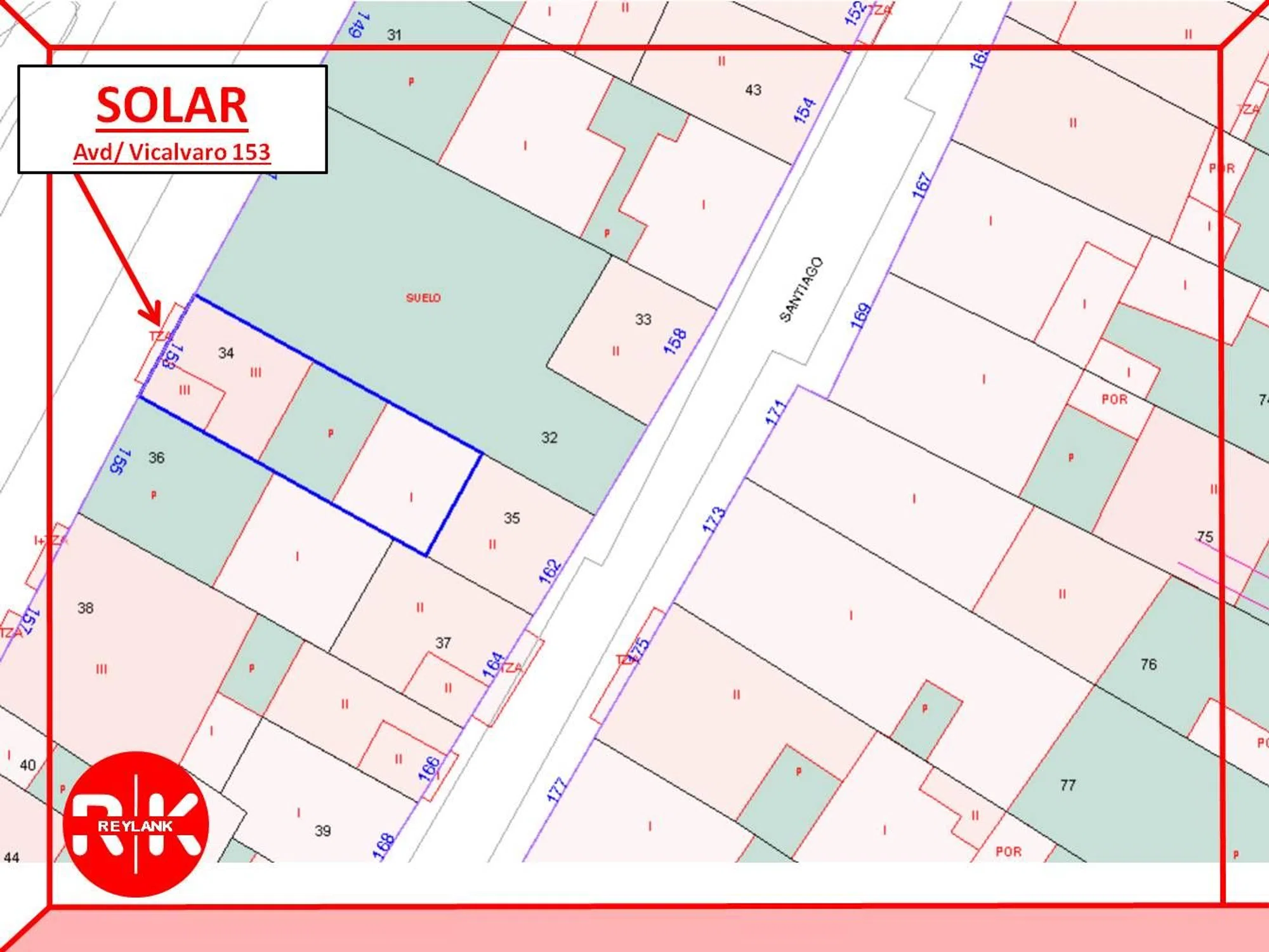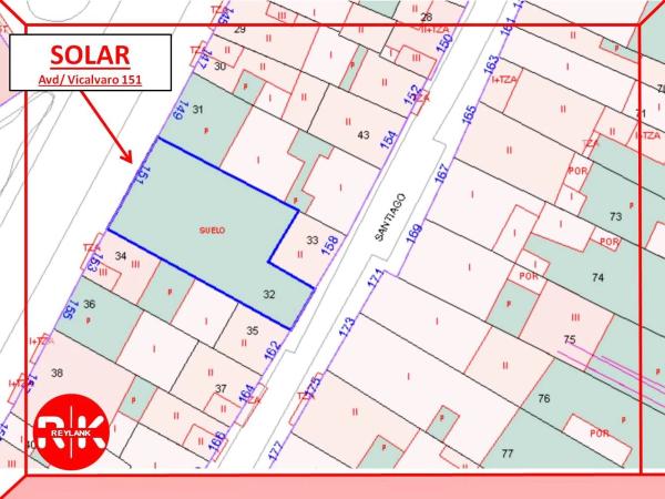 TERRENO URBANO (SOLAR) PARA EDIFICAR 16 VIVIENDAS CON PLAZAS DE GARAJES COSLADA (MADRID) AVD/ VICALVARO Nº151 y 153 Terreno (solar) urbano sin edificaciones en su interior, con fachada a Avd/ de Vicálvaro y a C/ Santiago avd/ VICALVARO (21 metros fachada principal) (c/ SANTIAGO (6,4 metros fachada) (Fondo 28 metros). Actualmente son 2 fincas independientes una de 339 m2 y otra de 139 m2 ( ref. catastro- 4456832VK5744N0001TA - 4456834VK5744N0001MA ) (Posibilidad de vender por separado) METROS EDIFICABLES (Sobre-rasante 1017 m2), (Bajo-rasante 480 m2). Calificado para construcción residencial en altura (bloques) y residencial unifamiliar (chalets), Posibilidad de segregar el solar en 4 parcelas. La situación del terreno está en una ubicación privilegiada, colindante con 2 construcciones, muy bien comunicada por líneas 287, 289 de autobús, cercanías, y Línea 7 de metro. Coslada es actualmente uno de los enclaves más demandados por los compradores siendo una zona totalmente consolidada. A penas a 15 minutos de Madrid Capital, Coslada tiene una de las mejores comunicaciones por carretera, A2, R2, M45, M50. SOLICITA MAS INFORMACIÓN SIN COMPROMISO. COMERCIALIZA: "Reylank Propiedades" es una empresa que desde su fundación hace más de 25 años está dedicada a la prestación de servicios de consultoría y mediación dentro del sector inmobiliario y financiero.