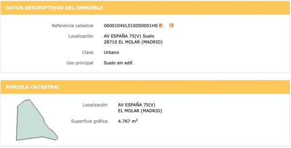ESTA PARCELA ES ESPECIAL PORQUE: Está ubicado en la Avenida España, 77 del municipio de El Molar, dentro del mismo casco urbano. ES IMPORTANTE SABER QUE: Se dispone de la Licencia de Obra Mayor, emitida en su día por el Ayuntamiento de El Molar, para ejecutar las obras requeridas para construir una residencia geriátrica. Esta licencia debe ser actualizada. Igualmente, se dispone del respectivo proyecto de construcción elaborado por el estudio de arquitectura L. Valdés & L. Zavala, SL, (Chile 15 Arquitectos).