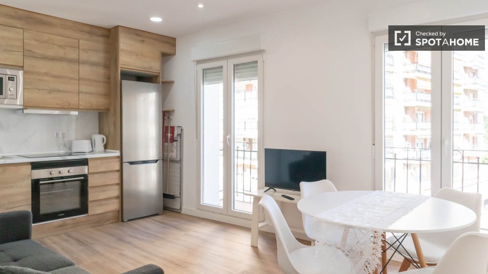 Ce superbe appartement de 4 chambres, situé dans le quartier animé de Puerta del Ángel à Madrid, offre un confort optimal. Entièrement meublé, il dispose d'équipements modernes, dont le chauffage central et la climatisation, une cuisine équipée avec lave-vaisselle et four, un lave-linge, une télévision et un balcon avec vue dégagée. L'immeuble est équipé d'un ascenseur. Tous les propriétaires Spotahome sont rigoureusement sélectionnés, vous permettant de louer en toute sérénité.