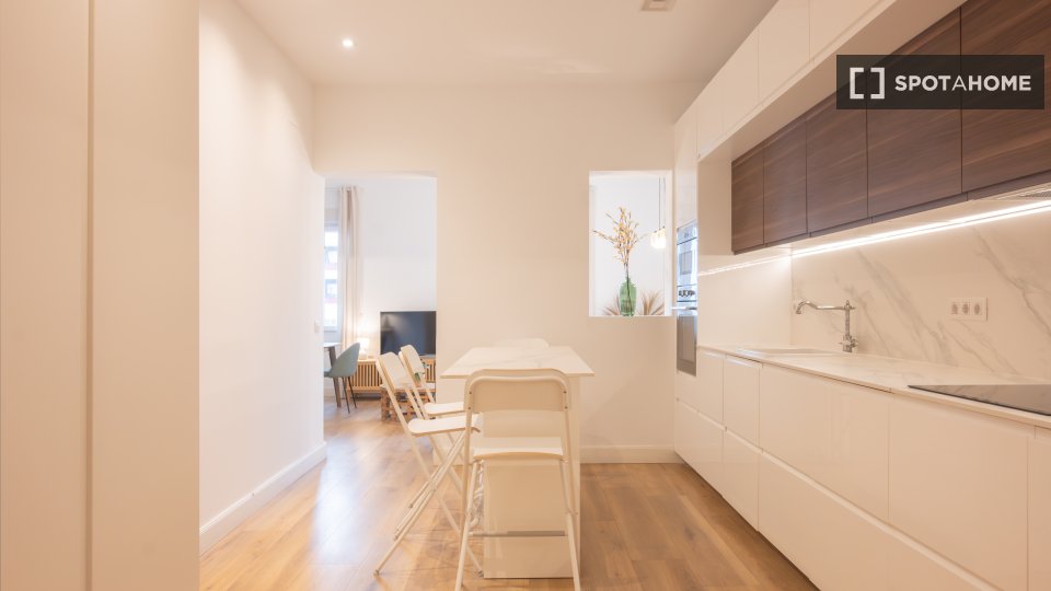 Cet appartement de 3 chambres, situé dans le quartier d'Ibiza à Madrid, est disponible à la location. Entièrement meublé et climatisé (chauffage et climatisation), il dispose d'une cuisine équipée avec lave-vaisselle et four, ainsi que d'un lave-linge dans un espace commun. Une télévision et une connexion Wi-Fi sont également incluses. Il est interdit de fumer et les animaux domestiques ne sont pas admis. L'appartement a été personnellement inspecté par Spotahome afin de garantir sa qualité.