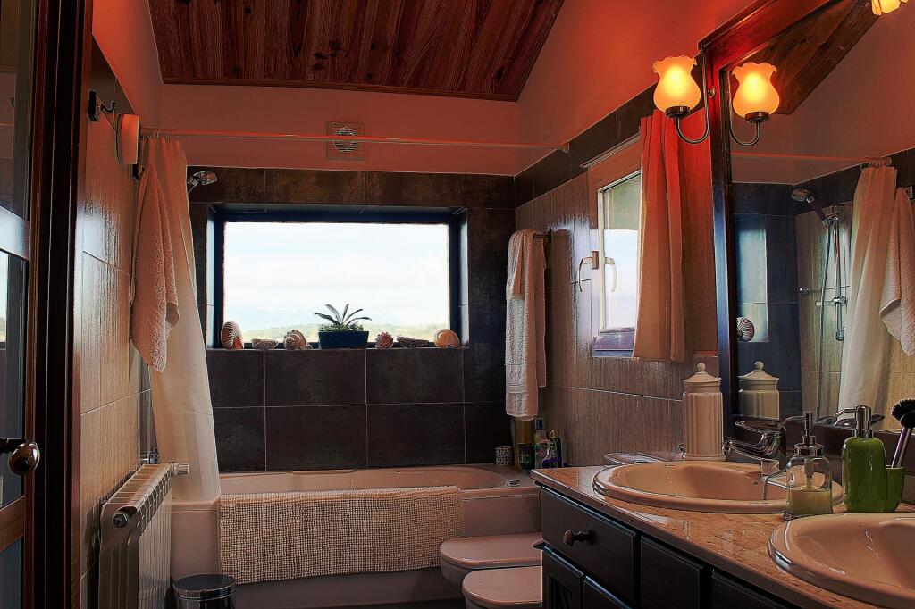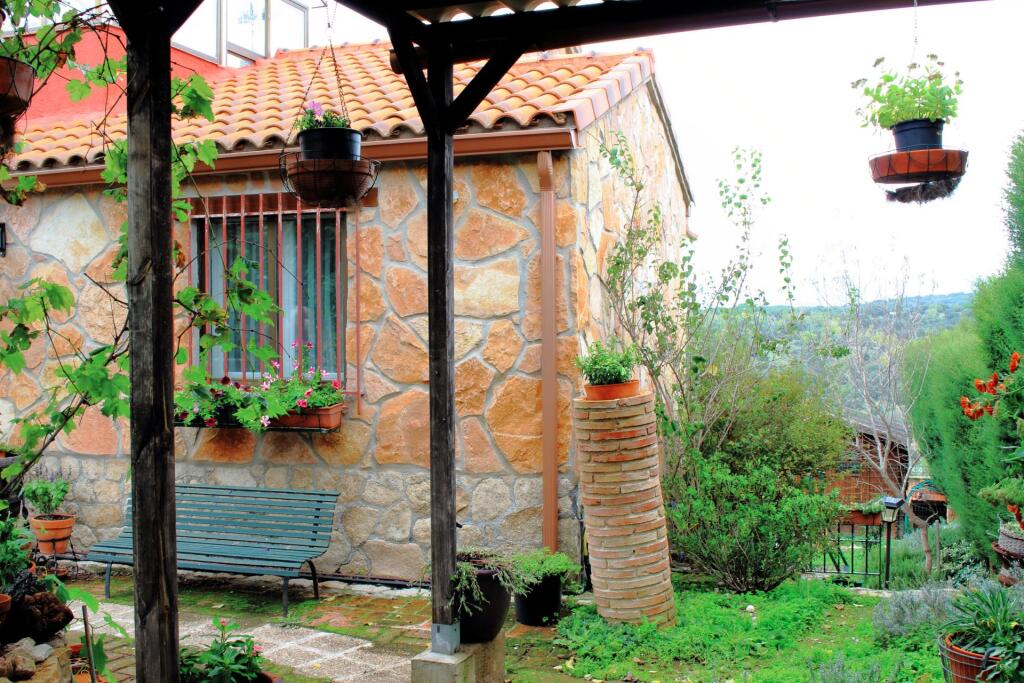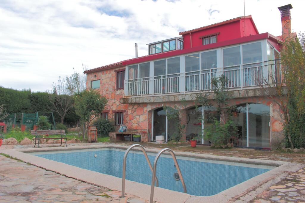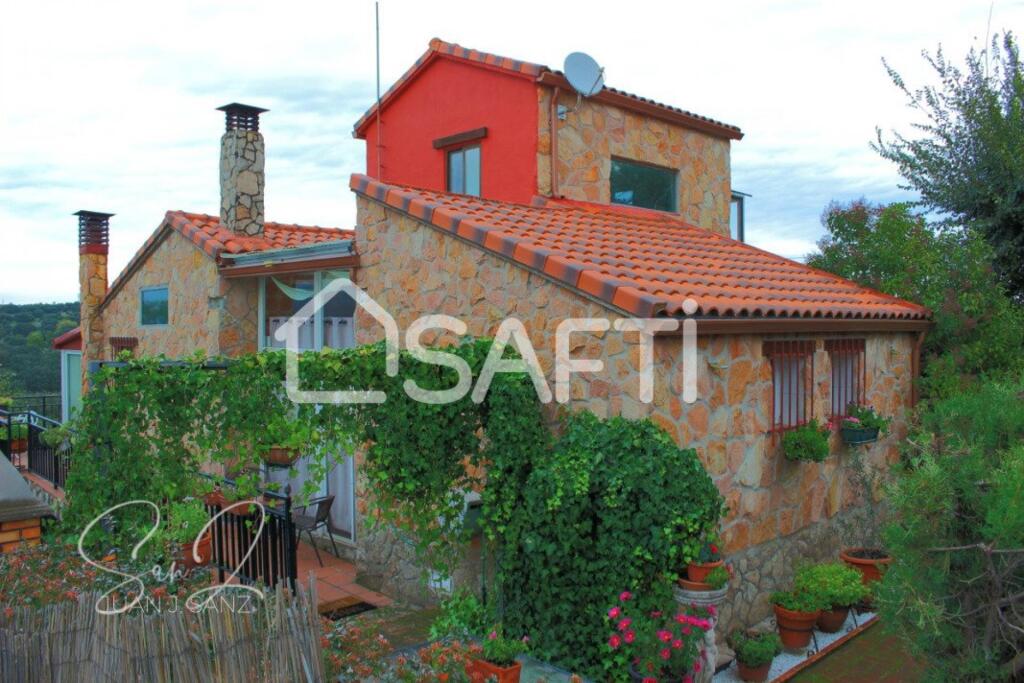 Los elementos que se han utilizado en su construcción y decoración compiten para darnos un destacado confort para vivir, tanto en su interior con salón, cuatro habitaciones, bodega, salón inferior con barra de bar, tres baños completos, uno de ellos con bañera de hidromasaje, además cuenta en su interior con tres terrazas cerradas, el “Gran Mirador”, otra terraza junto al salón decorado en piedra natural de Segovia con chimenea y otra terraza frente a la piscina con gimnasio, la piscina sin uso actualmente cuenta con climatización, solárium y un garaje interior para un vehículo con posibilidad de conexión eléctrica y más de tres plazas de aparcamiento exterior frente a la parcela.