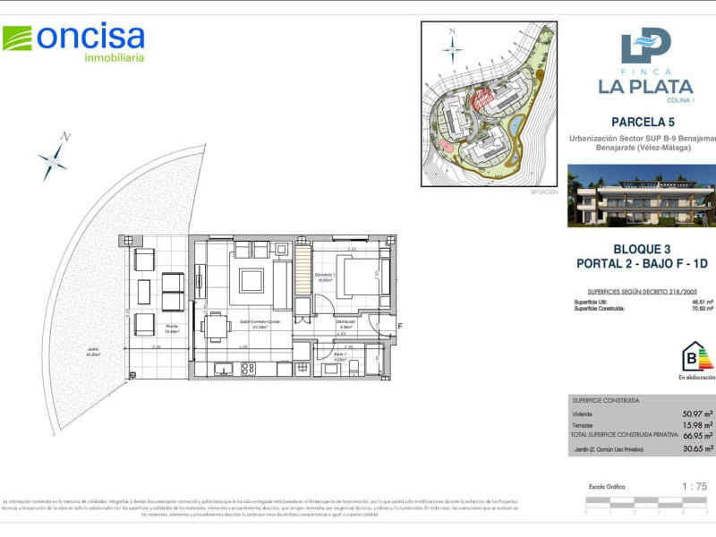 Finca La Plata est un nouveau projet résidentiel situé dans un cadre privilégié dans la ville côtière de Benajarafe. Il se compose de deux phases indépendantes, Colina I et Colina II, toutes deux à 150 mètres de la plage, à côté de la N-340, avec un accès facile depuis l'AP-7, à 20 minutes de Málaga et à 30 minutes de son aéroport international. Les promotions comprennent des maisons de 1 à 3 chambres, toutes avec de grandes terrasses avec vue sur la mer, des cuisines équipées et la climatisation par installation aérothermique, des sols en céramique de première qualité, des espaces communs paysagers avec piscine, une salle polyvalente, dans un complexe fermé, et un emplacement unique avec un accès piéton facile à la plage. Toutes les maisons ont une place de parking et un débarras.