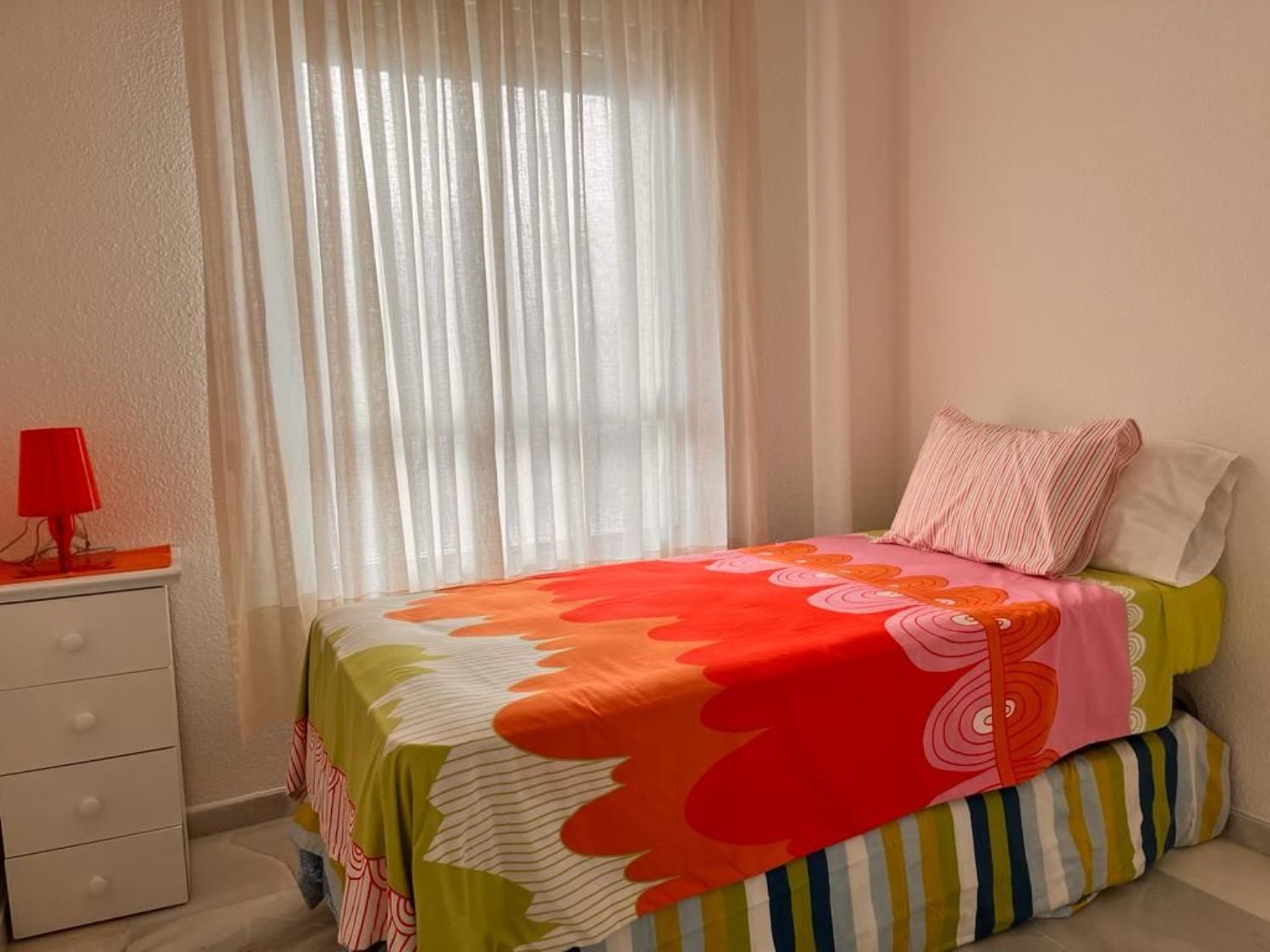 Alquiler para corta temporada hasta el 30 de junio.El inmueble se distribuye en amplio y luminoso salón comedor con acceso a la terraza, cocina totalmente amueblada, dos habitaciones, la principal con armario empotrado y un baño.Dispone de garaje privado.Urbanización con jardín y piscina comunitaria. Muy buena ubicación a 150 metros de la playa y rodeado de todos los servicios necesarios.Para más información o concertar una visita llámenos sin compromiso.