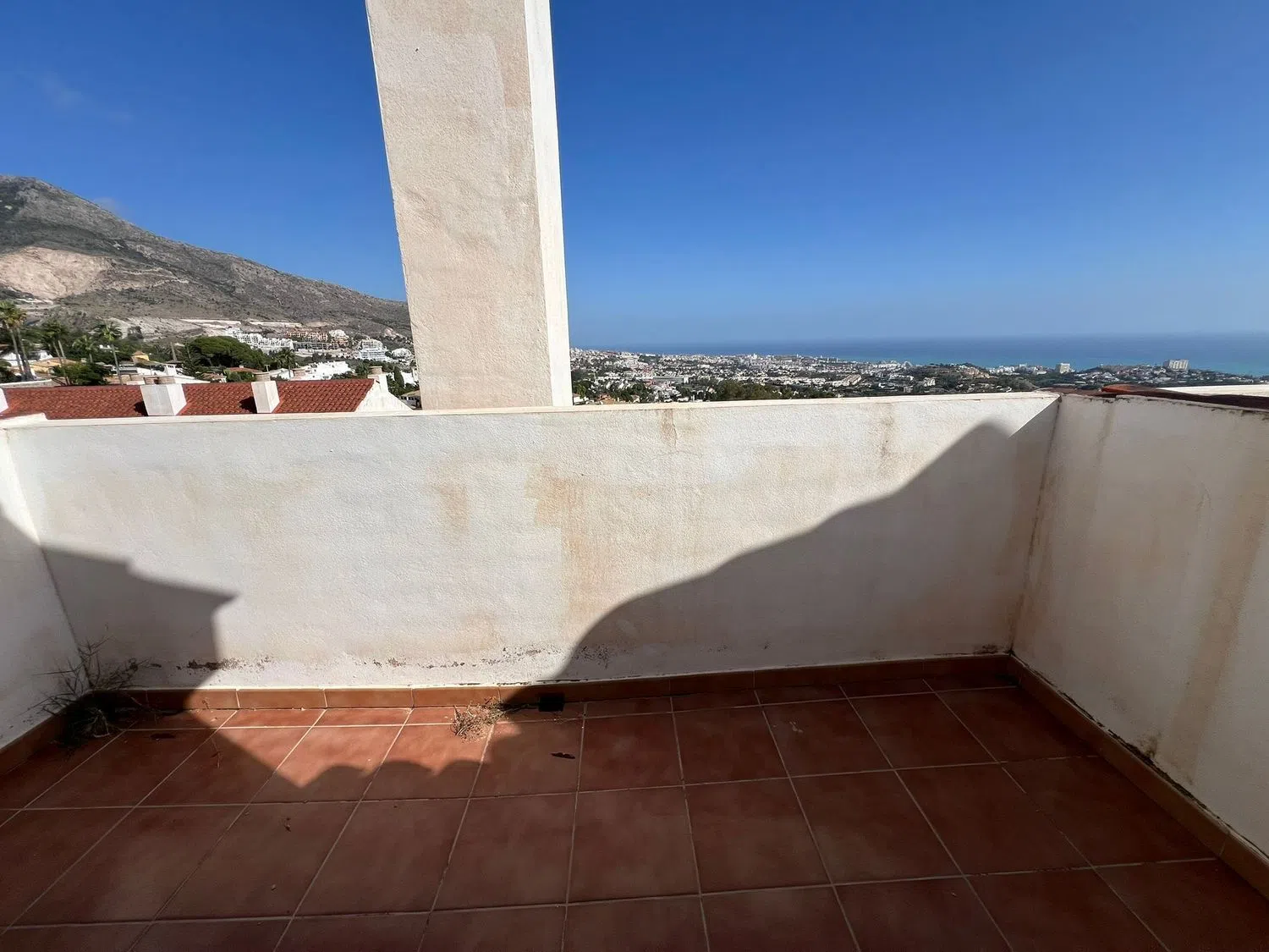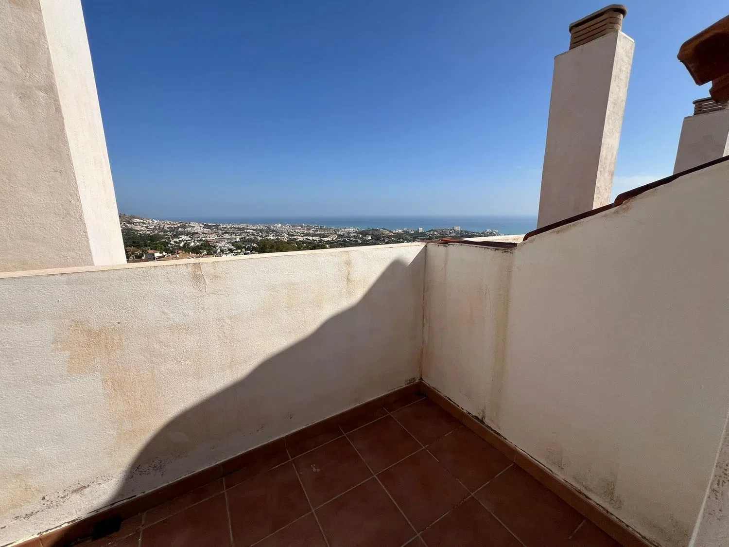 Duplex con vistas al mar, situado en el pleno centro de Benalmadena Pueblo, en un lugar muy tranquilo y sin ruido de trafico y en el mismo tiempo rodeado de todo tipo de servicios y con fácil acceso a A7. El duplex tiene en la planta principal un dormitorio pequeño, un cuarto de baño con plato de ducha, salón con cocina abierta y con grandes ventanales con vistas al mar. Subiendo las escaleras esta el dormitorio principal con el baño y una terraza con vistas panorámicas al mar. El precio incluye una plaza de parking subterránea y un trastero.
