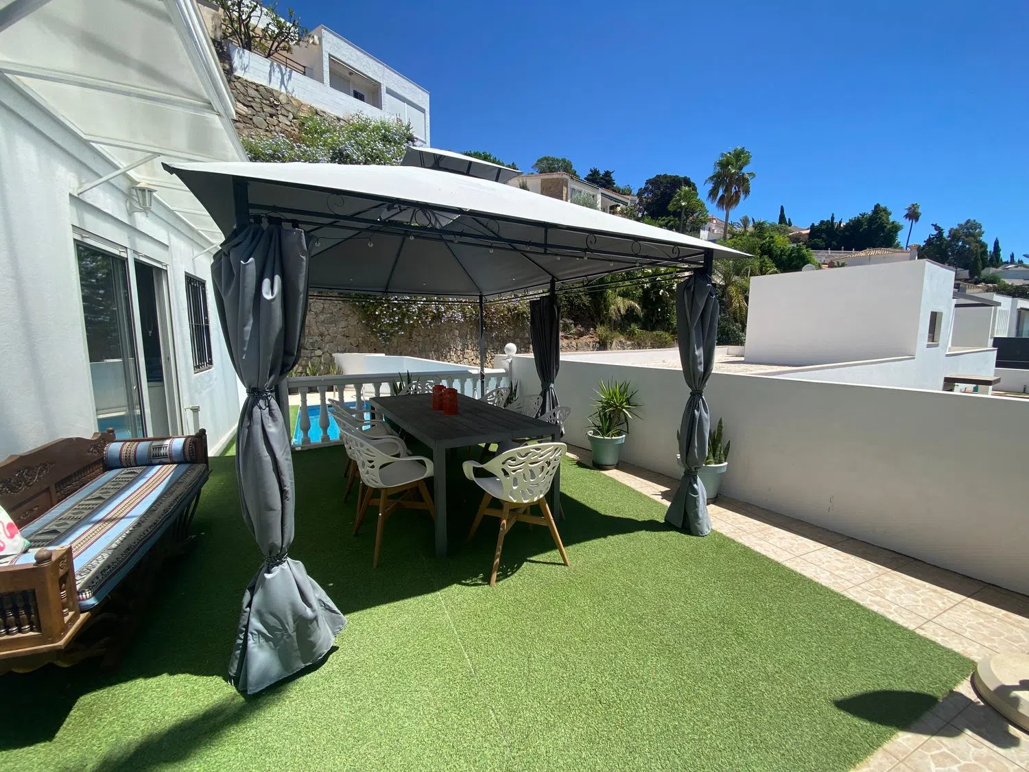 ¡Descubre la villa de tus sueños! Esta impresionante casa/chalet independiente, completamente reformada hace solo 3 años, te ofrece una vida de lujo y comodidad. Dividida en dos apartamentos separados, cada uno cuenta con 2 dormitorios dobles y 2 baños completos, perfectos para familias grandes, para recibir invitados con total privacidad o para explotar una parte con alquileres. Las cocinas modernas están completamente equipadas y los amplios salones-comedor son ideales para disfrutar de momentos inolvidables. La villa ha sido renovada con los más altos estándares: sistema eléctrico, fontanería, aire acondicionado, solados, alicatados, alisado de paredes, baños y cocinas. En el exterior, encontrarás una magnífica piscina, un gran solárium y un patio perfecto para relajarte bajo el sol. Además, dispone de un garaje para un coche grande y una amplia zona de almacenaje. Ubicada en una urbanización con instalaciones municipales de pádel, tenis, snack bar, piscina, pro shop, fisioterapia y masajes deportivos, esta villa es el lugar ideal para disfrutar de una vida activa y saludable. Su ubicación es inmejorable, cerca de la estación de tren, un colegio británico y la playa. Con 186 m² construidos y 157 m² útiles, esta propiedad ofrece espacio y confort en cada rincón. Cuenta con armarios empotrados, trastero y calefacción por bomba de frío/calor. La parcela de 415 m² orientada al sur garantiza luz natural durante todo el día. No pierdas la oportunidad de hacer una visita hoy mismo y descubrir todo lo que esta villa tiene para ofrecerte. ¡Tu nuevo hogar te espera!