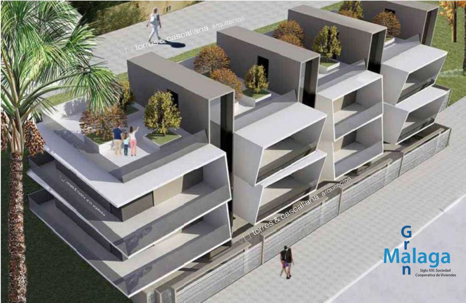 28 viviendas de renta libre con zonas comunes de jardin y piscina.