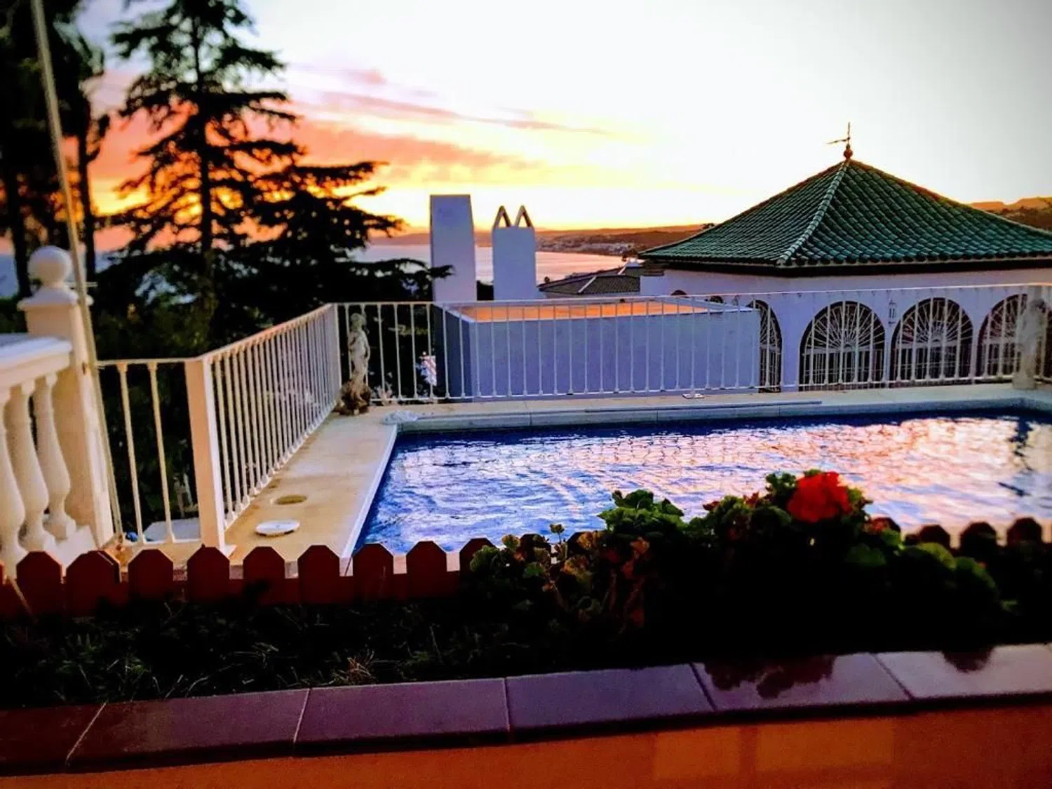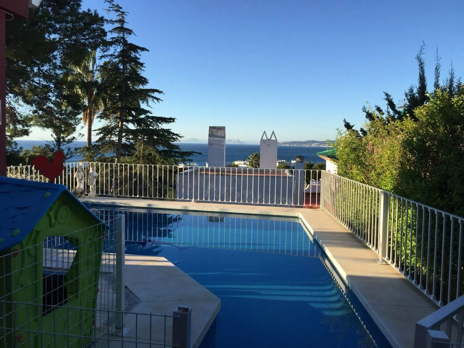Maravilloso chalet en la Costa del Sol, con piscina privada y vistas al mar orientación sur (Vistas Gibraltar / Marruecos), de 500m2 (250m2 construidos), cerca de la playa, la ciudad, la montaña, hospital y colegios. 2 plazas de garaje y 2 sótanos. Aire acondicionado frío / calor y chimenea. 4 amplios dormitorios, un baño en suite y otro individual, cocina completamente amueblada / equipada de grandes dimensiones. Salón amplio con chimenea y jardín privado muy cuidado con pajarera y estanque. Hay que destacar que es una vivienda de una sola planta. Sólo particulares, abstenerse inmobiliarias.