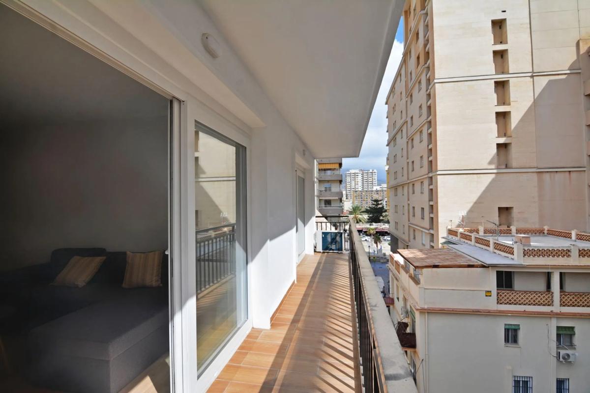 Exclusivo piso reformado a escasos metros del mar en Los Boliches Presentamos esta magnífica vivienda completamente reformada y amueblada, situada en una cuarta planta con ascensor nuevo, en una calle tranquila y segura del corazón de Los Boliches. Su excelente orientación y amplios ventanales llenan cada estancia de luz natural. Dispone de dos amplios dormitorios con armarios empotrados, dos baños completos (uno de ellos en suite), y un salón comedor con acceso a una gran terraza-balcón, perfecta para disfrutar del clima de la Costa del Sol. La cocina integrada, moderna y totalmente equipada con electrodomésticos de última generación, aporta un toque contemporáneo y funcional. Entre sus calidades destacan la carpintería exterior de PVC con doble acristalamiento, los suelos de parquet y el sistema de climatización frío/calor en toda la vivienda. La ubicación es simplemente inmejorable: a tan solo 30 metros de la playa y el paseo marítimo, 100 metros de la estación de tren de Los Boliches (con conexión directa a Málaga y al aeropuerto), y junto a la Plaza San Rafael, donde hay aparcamiento subterráneo con abonos disponibles. Todo ello rodeado de restaurantes, supermercados y todos los servicios necesarios para el día a día. Una propiedad lista para entrar a vivir, ideal tanto como residencia habitual, segunda vivienda o inversión segura en una de las zonas más demandadas de Fuengirola. Oportunidad.