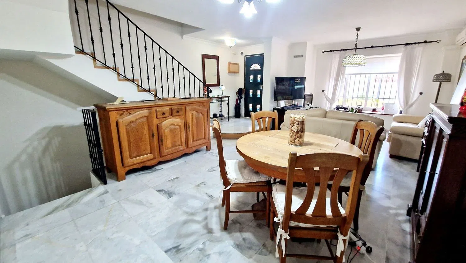 Propiedad en venta en segunda línea de playa, a 100m de la playa en Fuengirola! Excelente ubicación cerca de transporte, comercios y restaurantes. La casa se distribuye de la siguiente manera: En la planta principal hay una terraza delantera con sol de mañana, hall de entrada, salón comedor con chimenea, aseo con ducha, cocina totalmente equipada con lavadero y acceso a un gran patio trasero con sol de tarde. En la primera planta hay 3 habitaciones dobles y 2 baños reformados. Desde arriba hay vistas parciales al mar. La planta baja ofrece suelos de mármol y la planta superior suelos de madera. La planta baja es una gran sala de juegos/almacén que actualmente se utiliza como oficina y 2 plazas de aparcamiento subterráneo. La casa tiene puertas nuevas, A/A, ventanas climalit, La comunidad tiene piscina. Soleada y luminosa y con una excelente ubicación, esta vivienda está lista para entrar a vivir. Adosada, Torreblanca, Costa del Sol. 3 Dormitorios, 3 Baños, Construidos 140 m², Terraza 47 m². Posición: Ciudad, Área Comercial, Cerca de Tiendas, Cerca del Mar, Urbanización. Orientación: Sur. Estado: Excelente, Reformado Recientemente. Piscina: Comunitaria. Climatización: Aire Acondicionado, Chimenea. Vistas: Mar. Caracteristicas: Armarios Empotrados, Cerca de Transporte, Terraza Privada, Trastero, Lavadero, Baño En-Suite, Suelo de Madera, Suelos de Mármol, Barbacoa, Doble acristalamiento. Muebles: Parcialmente. Cocina: Equipada. Jardin: Privado. Seguridad: Alarma. Aparcamiento: Subterráneo, Garaje, Privado. Categoría: Reventa.