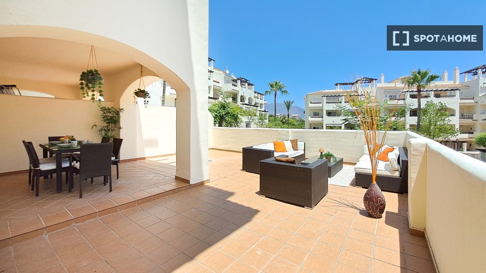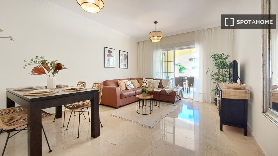 Situé au cœur de Manilva, cet appartement de deux chambres offre un cadre de vie moderne et meublé avec une terrasse, un système de chauffage électrique performant et le Wi-Fi inclus. Il dispose notamment d'une cuisine entièrement équipée, conçue pour votre confort, avec lave-vaisselle et four. Veuillez noter qu'il est interdit de fumer et que les animaux de compagnie sont interdits dans le logement. Bien que le bien ne soit pas vérifié en personne par Spotahome, tous les propriétaires sont soumis à un processus d'évaluation rigoureux afin de garantir une expérience de location optimale.