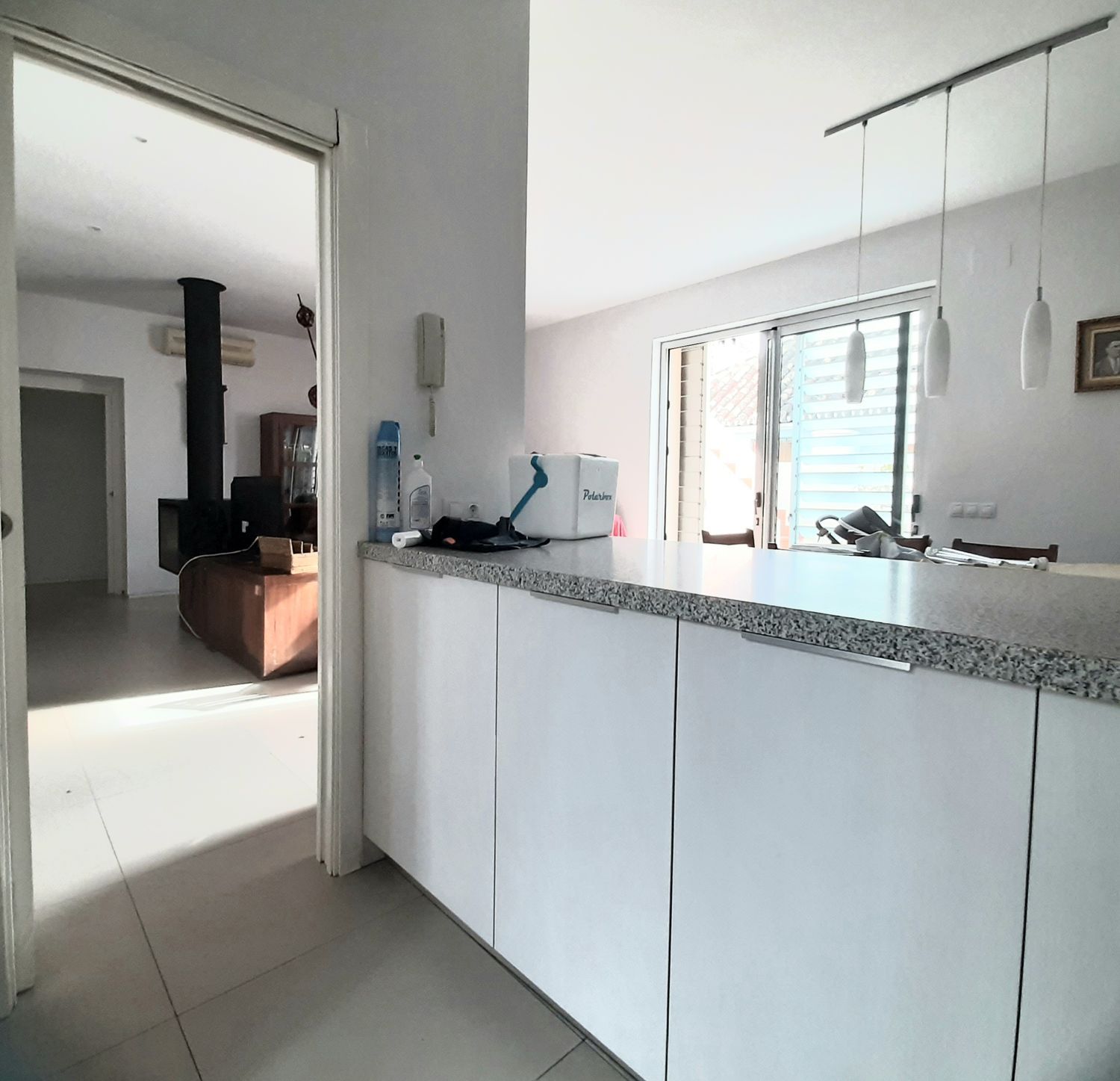 Casa adosada sin muebles pero con cocina amueblada, electrodomésticos y armarios empotrados. Todo en una única planta, distribución abierta, totalmente reformada recientemente, buenas calidades, ventanas de estilo antiguo pero totalmente modernas con climalit (todos los cerramientos de la casa nuevos oscilobatientes y/o abatibles) y mosquiteras.En las fotos aparecen algunos muebles pero la vivienda se alquila sin amueblar.Se alquila con la cocina amueblada de hace poco tiempo, con electrodomésticos.También se incluyen en el alquiler la piscina y split de aire condicionado en el salón y dormitorio principal.Salón con chimenea. Toda iluminación led. Patio con iluminación ambiente.Toma de antena en los tres dormitorios y salón.Reforma integral completa: instalaciones de luz, fontanería, puertas, ventanas.. .La vivienda dispone de patio delantero, patio trasero y terraza en planta superior. Muy luminosa (totalmente exterior) y con ventilación cruzada.Puerta principal de seguridad.Se alquila por periodo mínimo de un año.Imprescindible acreditar solvencia.Distrubución abierta: entrada desde patio delantero (con acceso a garaje descubierto de una plaza) acceso a salón y cocina abierta, desde salón se accede a patio trasero y pasillo que da acceso a zona de dormitorios con dos baños con ducha y tres dormitorios, desde uno de ellos se accede igualmente a patio trasero; desde patio trasero se puede subir a terraza solarium.