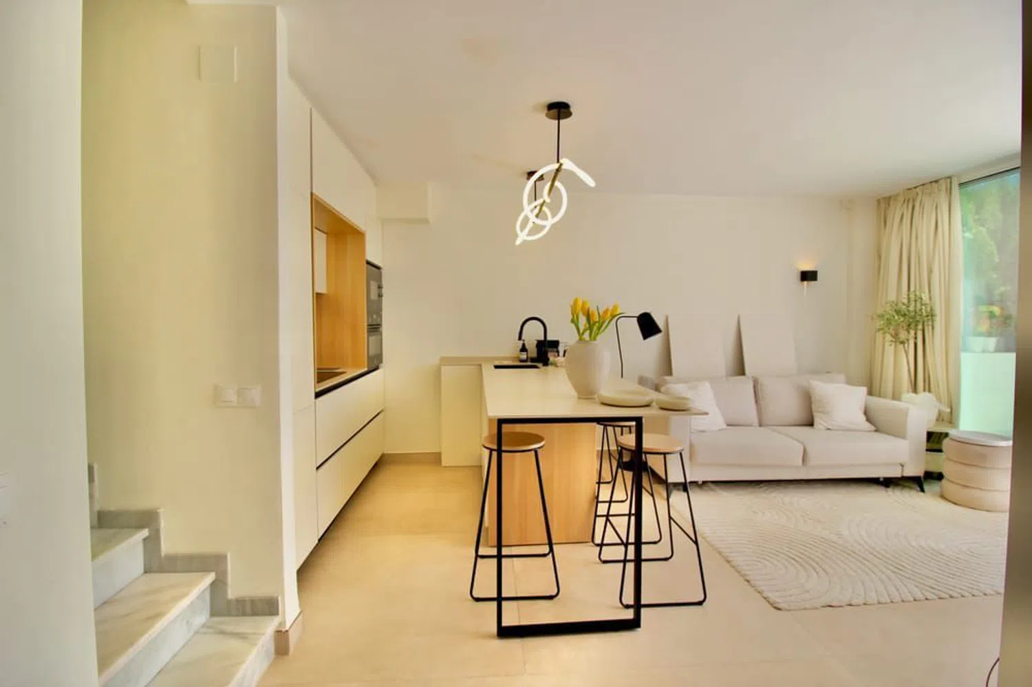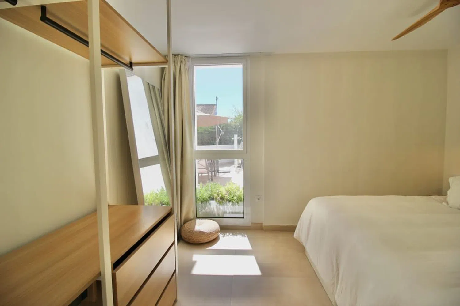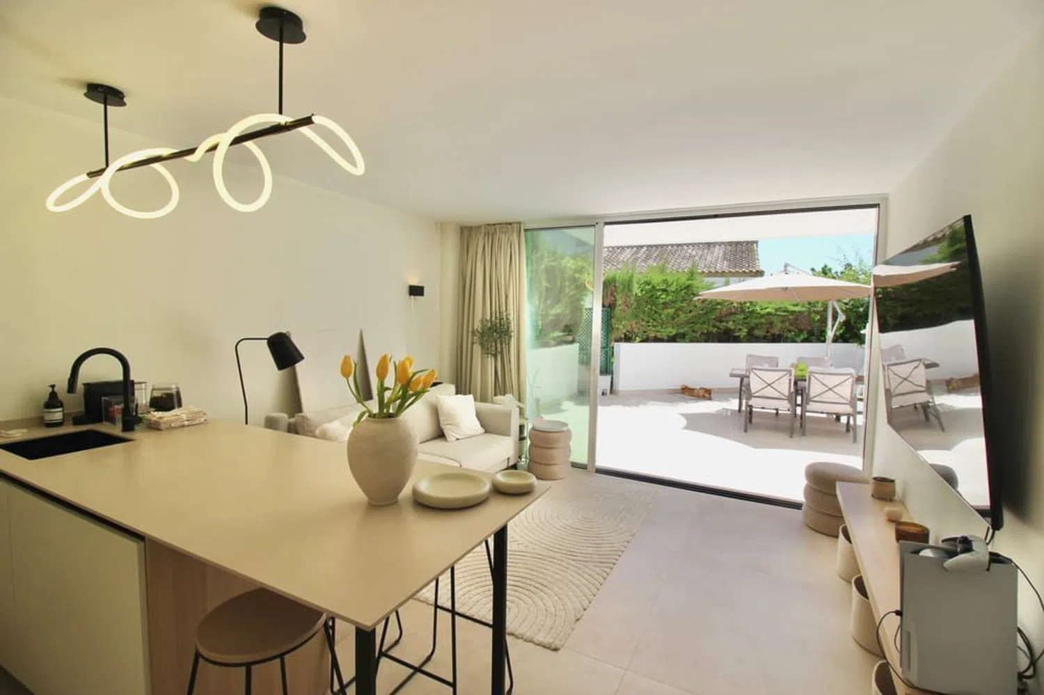 Costabella, a 5 minutos andando a la playa. Renovada recientemente con muy buen gusto os presentamos esta propiedad que consta de dos dormitorios, 1 cuarto de baño, amplia terraza de 40m2 con salida a los jardines y piscina de la urbanización. Zona tranquila con residentes todo el año al lado, cerca de chiringyuitos de moda y en unade las mejores playas.