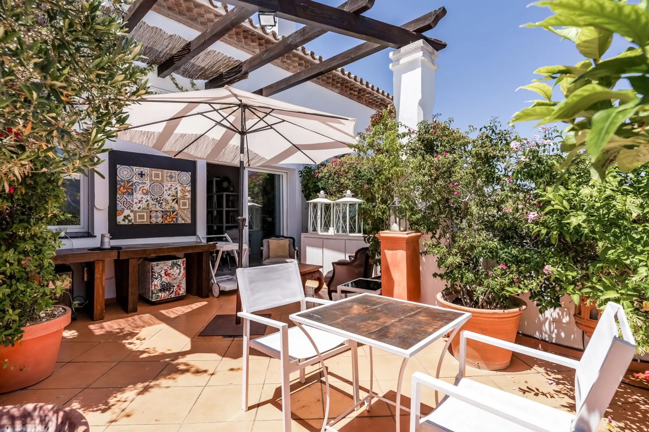 Increíble propiedad única en el corazón de Nueva Andalucía. Perfectamente situado, la propiedad cuenta con impresionantes vistas de La Concha y ofrece un tranquilo retiro con una terraza muy grande con encantadores árboles de limón. El diseño de esta propiedad es abierto y agradable. A la izquierda, un amplio salón con una gran chimenea crea un ambiente cálido y elegante. Adjacent es una cocina totalmente equipada y una zona de lavandería al aire libre. Este lado de la propiedad también cuenta con un confortable dormitorio, ideal para los huéspedes o la familia. En el lado derecho de la entrada, encontrará dos dormitorios adicionales bien designados y un aseo de invitados. Balcones en cada lado de la propiedad, con árboles de limón, así como ventanas de ático, proporcionan abundante luz natural y una conexión encantadora con el exterior. Otras características incluyen: 1 o 2 plazas de aparcamiento, acceso a una piscina comunitaria bien mantenida, a poca distancia de tiendas, clubes de tenis, supermercados, restaurantes y el vibrante Puerto Banús. Y por supuesto, todos los dormitorios tienen baños en suite. La propiedad ofrece una gran flexibilidad, con la opción de dividirla en dos residencias separadas si se desea. Ya sea como una lujosa casa familiar, una propiedad de inversión, o una combinación de ambos, esta propiedad presenta encanto, versatilidad y potencial infinito en una ubicación privilegiada.
