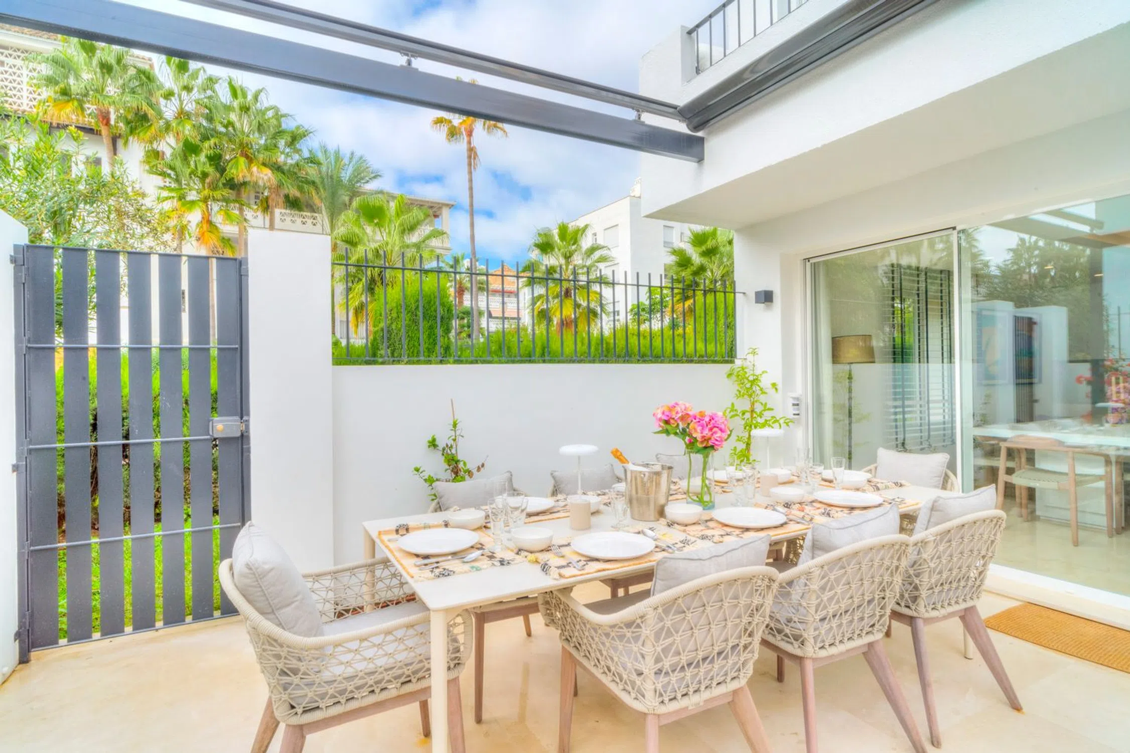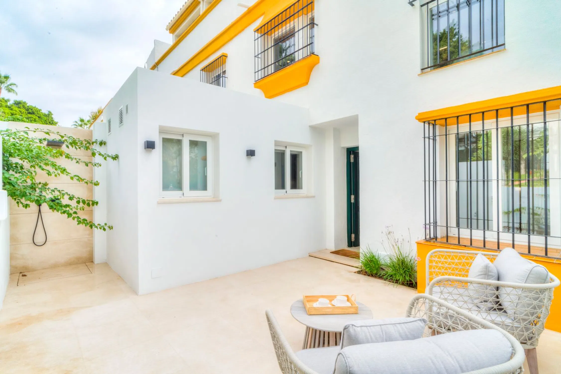 Casa preciosa en primera línea de playa en la Milla de Oro de Marbella Petit Palais es una casa bellamente reformada situada a pocos metros de las increíbles playas de la Milla de Oro de Marbella y rodeada de jardines tropicales. Esta elegante y moderna casa, luminosa y espaciosa, ofrece un retiro idílico en una comunidad tranquila, enclavada entre las zonas más populares y vibrantes de Marbella. Con cuatro dormitorios amplios, es perfecta para familias y turismo. Cuenta con amplias terrazas delanteras y traseras, equipadas con cómodos muebles de exterior y zonas de comedor, ideales para disfrutar de comidas al aire libre o relajarse con la brisa marina. La propiedad se vende totalmente amueblada con una cocina totalmente equipada y todas las comodidades modernas, incluyendo Wi-Fi de alta velocidad, lavadora y aire acondicionado para garantizar una estancia confortable. Todo tipo de actividades y atracciones están disponibles a la vuelta de la esquina, incluyendo dos piscinas comunitarias, una pista de tenis y una pista de pádel, todas dentro de la comunidad y de uso gratuito. Hay un paseo marítimo que conecta Marbella al este con Puerto Banús al oeste, y a ambos se puede acceder caminando o en bicicleta. Marbella es conocida por su estilo de vida glamuroso, sus playas prístinas y su encanto histórico. La Milla de Oro, un tramo de costa entre Marbella y Puerto Banús, es el corazón de la acción, y la comunidad de Marbellamar está perfectamente ubicada a poca distancia de todos los puntos de interés principales. Puede tomar el sol en playas de arena, nadar en el Mediterráneo y comer en restaurantes de alta cocina.