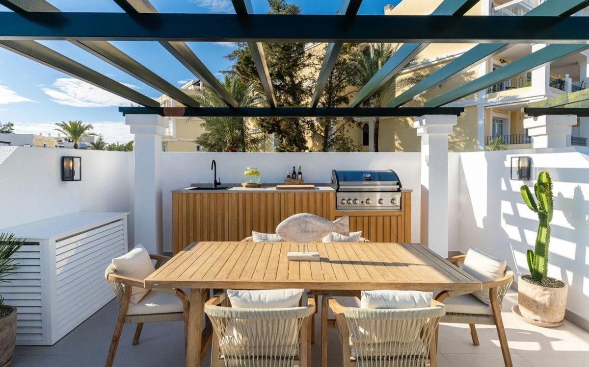 Una casa adosada recién renovada completada (01/03/2025) en venta en el valle de golf de Aloha en Marbella. Un diseño interior que ofrece un ambiente tranquilo que abraza el estilo de vida mediterráneo frente a la playa al aire libre que es Boho. Consta de tres dormitorios dobles capaces de alojar a seis personas. Tres baños y cuatro áreas de terraza. Consiste en un diseño interior con una paleta de colores base tierra, una propiedad lista para mudarse. Una terraza en la azotea perfectamente equipada con cocina al aire libre, equipada con una gran barbacoa, frigorífico/congelador y mucho espacio de almacenamiento. Disfrutando de vistas espectaculares que se extienden desde el mar, a través de un campo de golf impecable y la icónica montaña La Concha. La propiedad se vende completamente amueblada como se muestra en las imágenes de este folleto. Incluye estacionamiento en garaje para 2 coches. Contáctenos para más información.