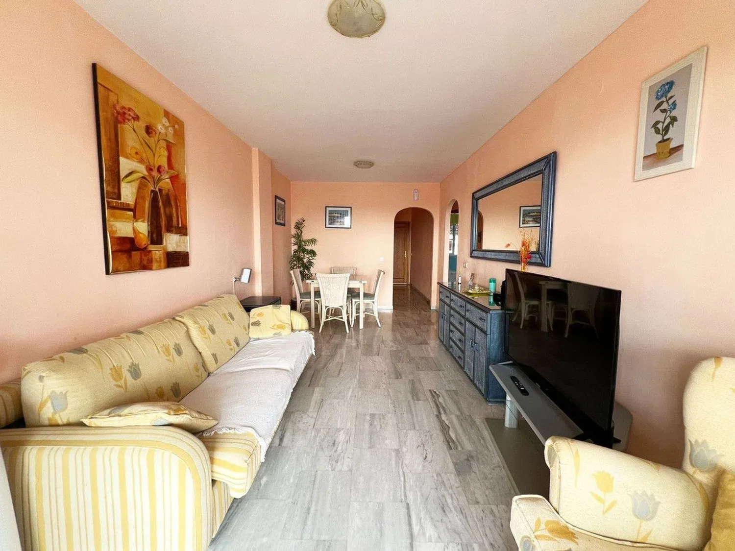 Descubre un encantador apartamento de dos dormitorios, diseñado para brindar comodidad y estilo. Ambos dormitorios cuentan con armarios empotrados, y el dormitorio principal dispone de un baño en suite. El amplio salón se abre a una terraza privada, donde puedes relajarte y disfrutar de impresionantes vistas despejadas al mar. Una cocina independiente totalmente equipada con una zona de lavandería adyacente añade comodidad y funcionalidad, mientras que el lujoso suelo de mármol en todo el hogar realza la elegancia del espacio. Esta residencia también ofrece acceso a una refrescante piscina comunitaria e incluye una plaza de aparcamiento dedicada. Perfecto para aquellos que buscan tranquilidad y belleza en la costa, este apartamento promete una experiencia de vida excepcional.