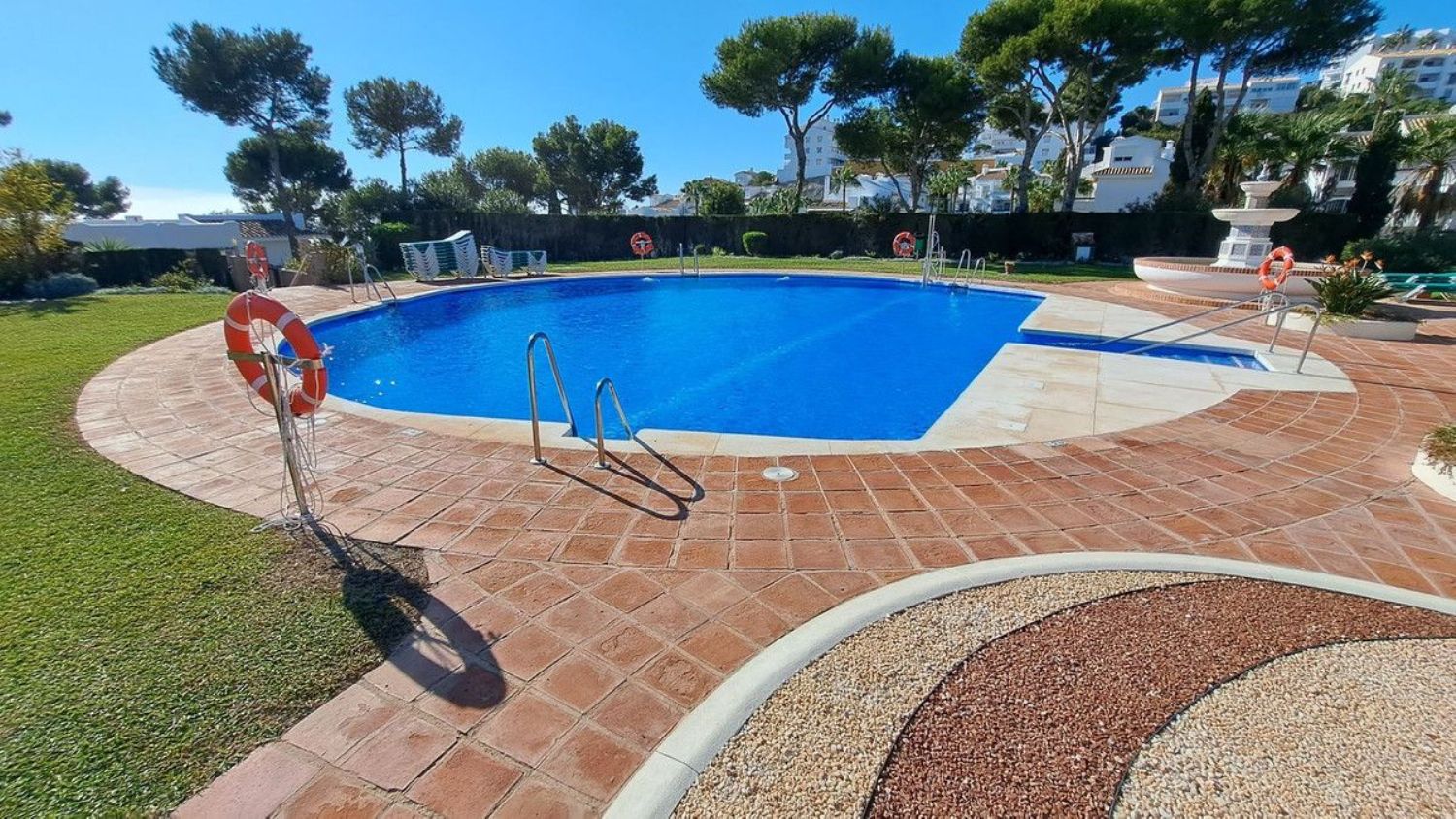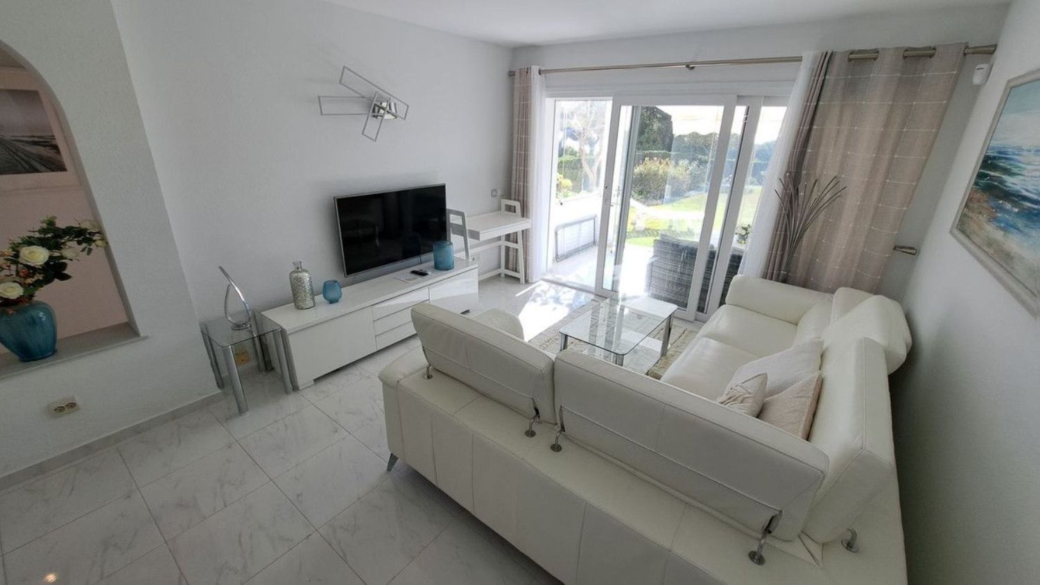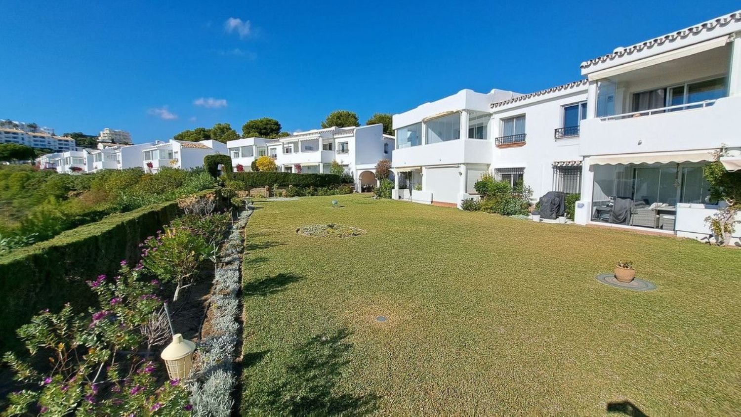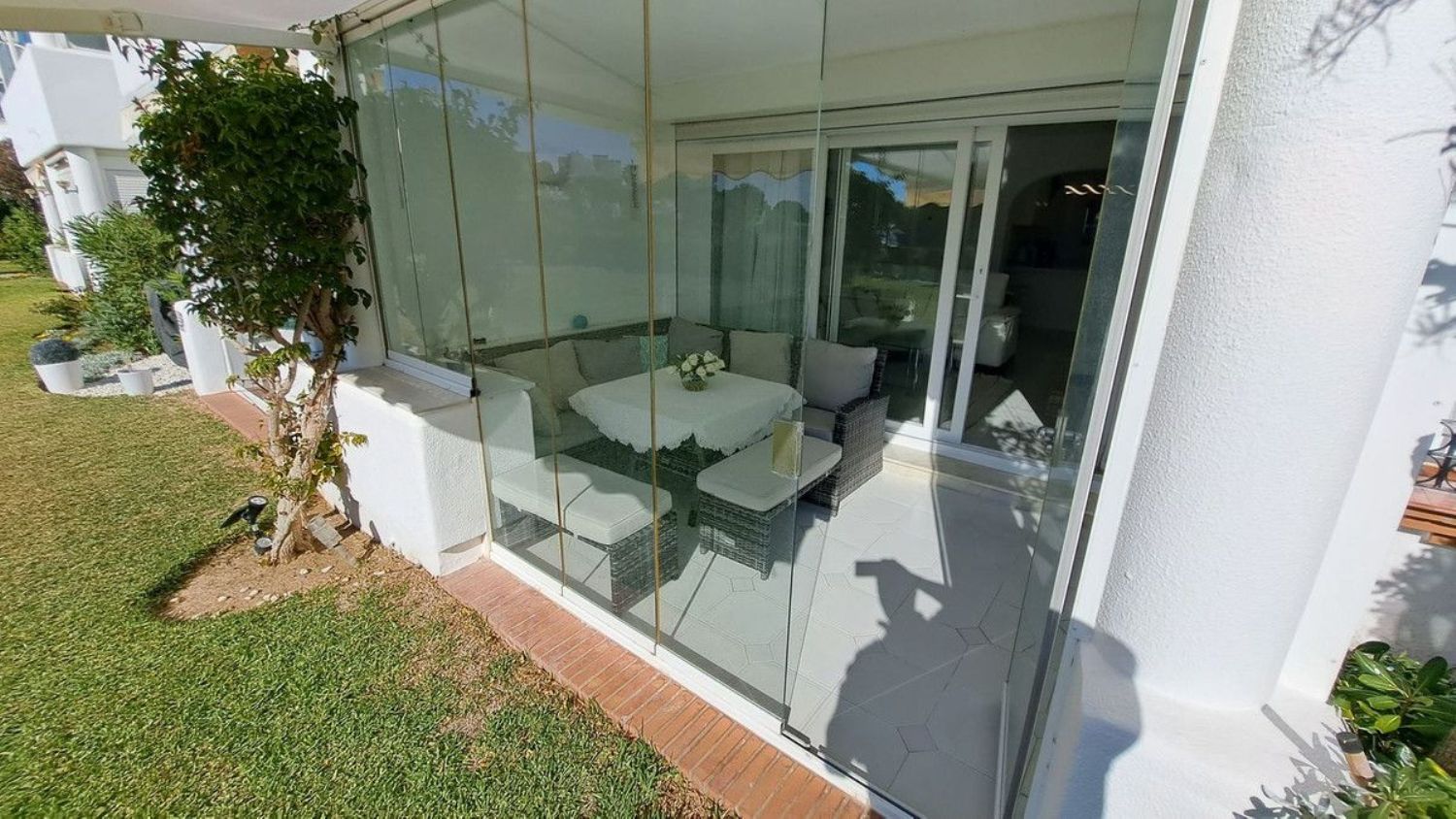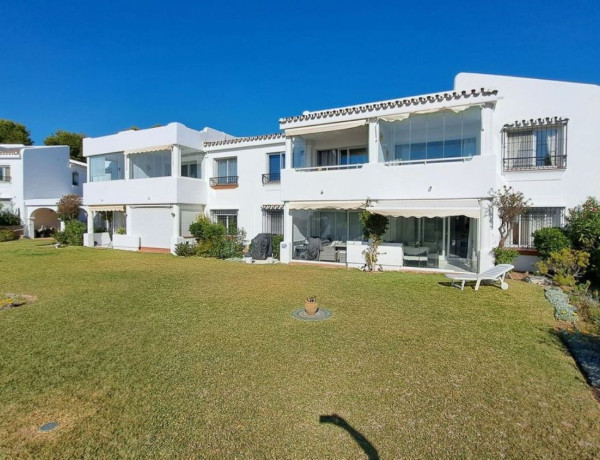 Hermoso apartamento en planta baja de dos dormitorios y un baño ubicado en la solicitada zona de Jardín C Miraflores. La propiedad consta de: - Puerta de entrada al amplio salón con comedor que conduce al patio y maravillosos jardines subtropicales con vistas parciales al mar, cocina totalmente amueblada y equipada, dos dormitorios dobles y un baño de buen tamaño. El apartamento ha sido reformado recientemente. La propiedad se beneficia de alarma, seguridad 24 horas, servicios de recepción, piscina comunitaria con bar. Se recomienda visitarla temprano ya que esta propiedad no estará en el mercado por mucho tiempo.
