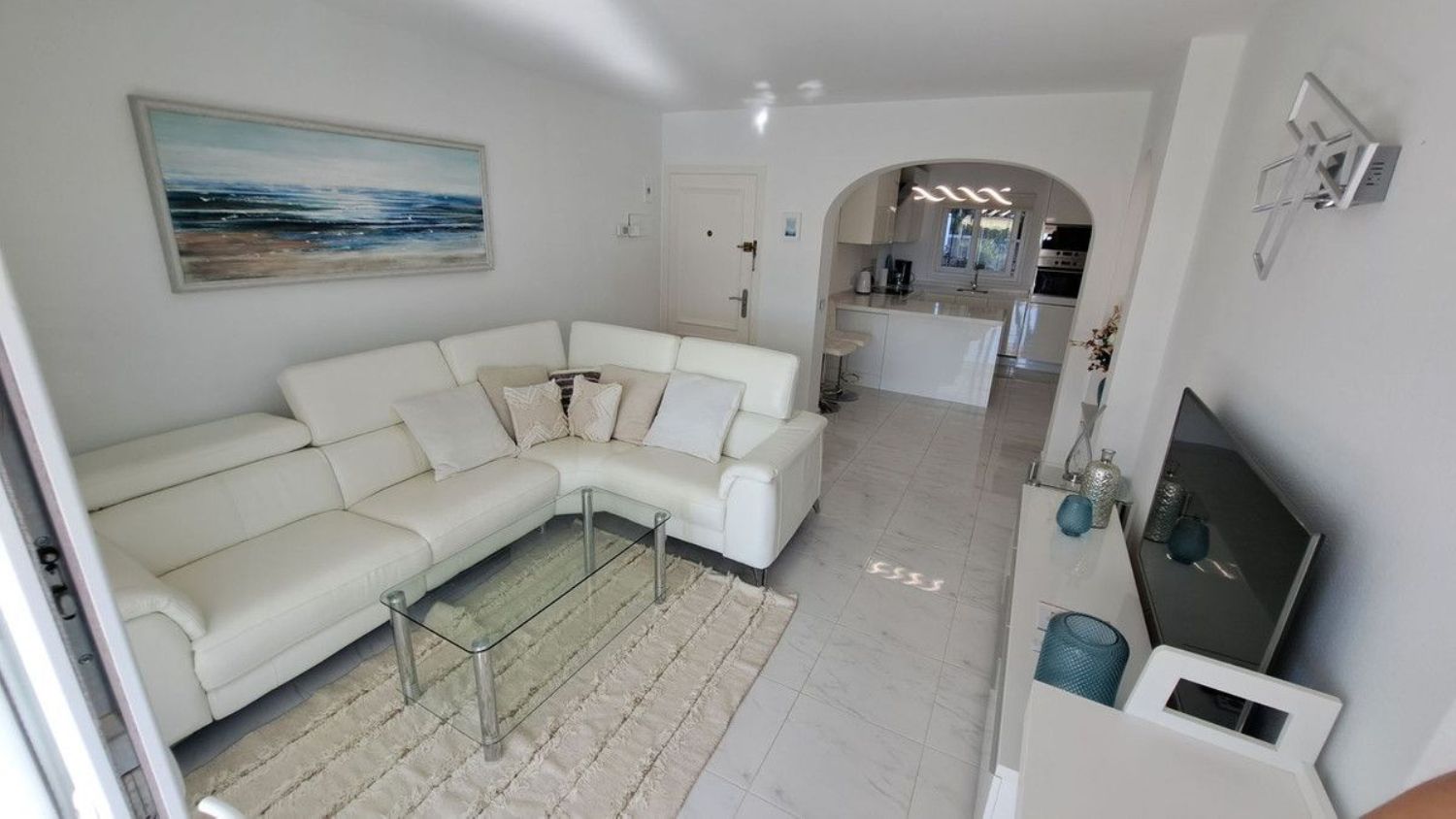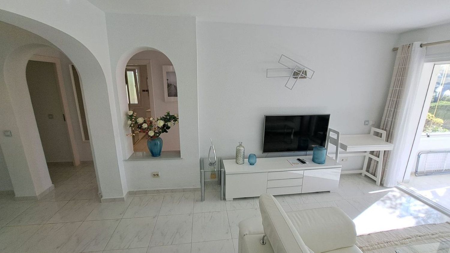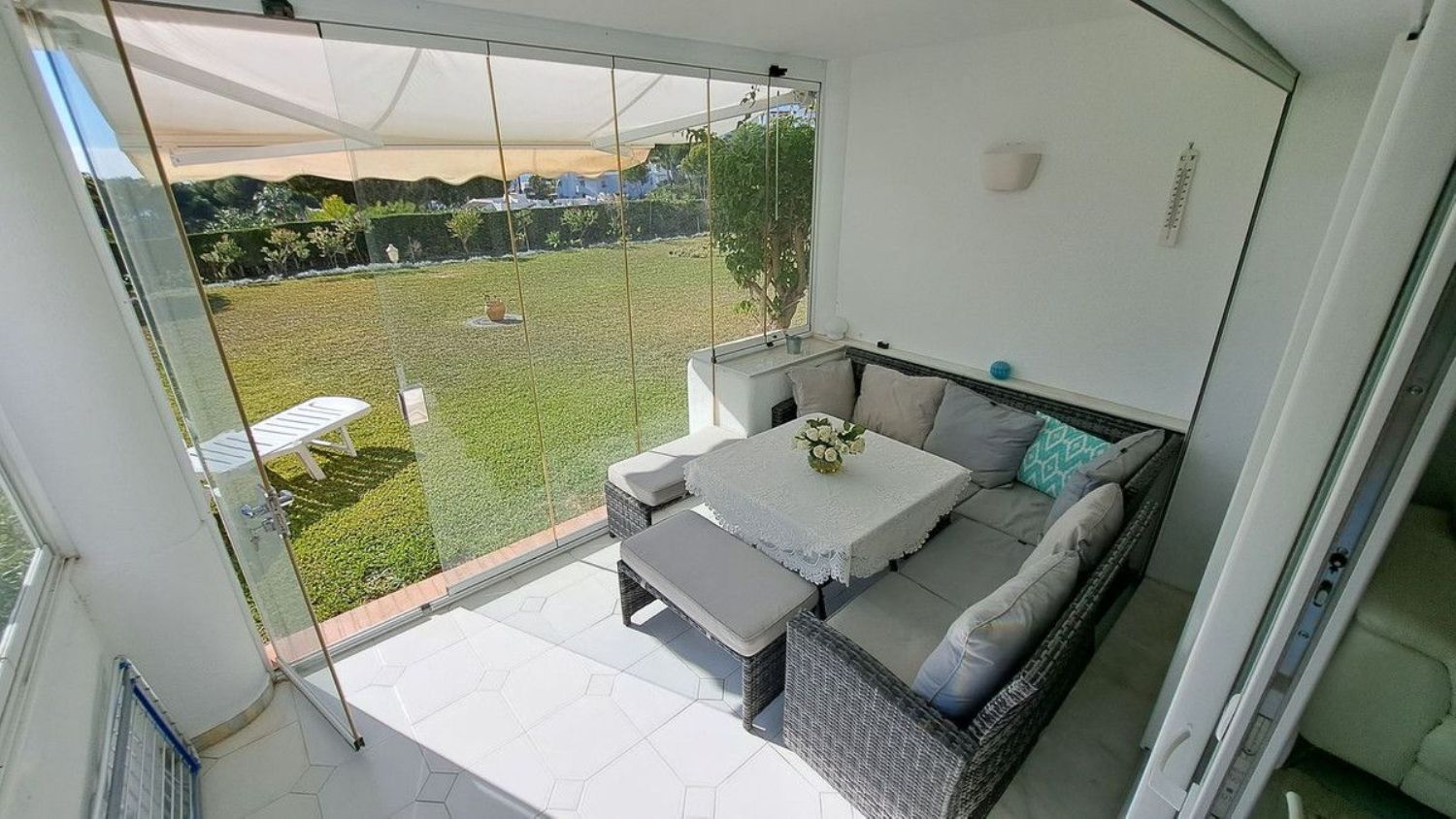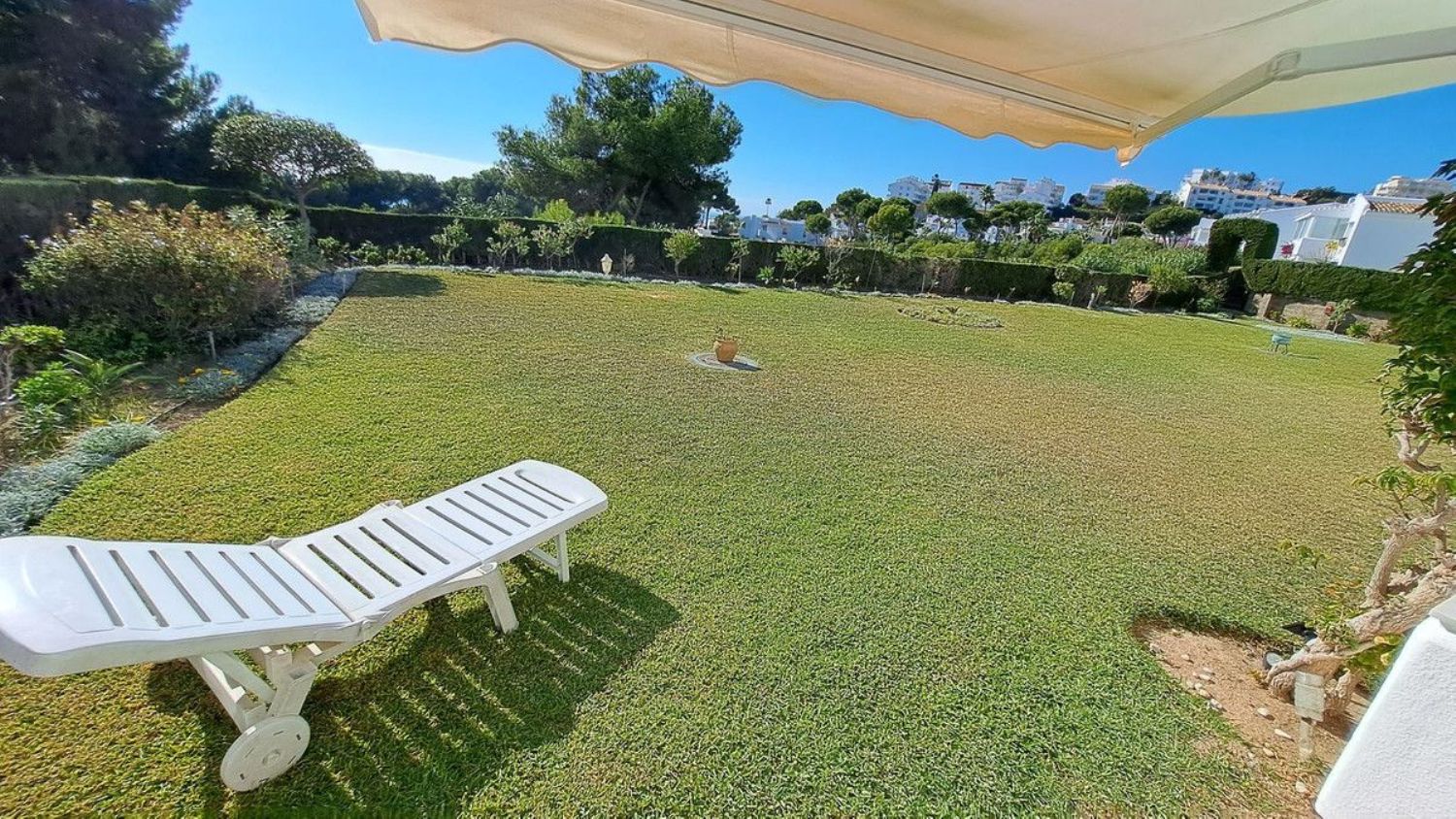 Hermoso apartamento en planta baja de dos dormitorios y un baño ubicado en la solicitada zona de Jardín C Miraflores. La propiedad consta de: - Puerta de entrada al amplio salón con comedor que conduce al patio y maravillosos jardines subtropicales con vistas parciales al mar, cocina totalmente amueblada y equipada, dos dormitorios dobles y un baño de buen tamaño. El apartamento ha sido reformado recientemente. La propiedad se beneficia de alarma, seguridad 24 horas, servicios de recepción, piscina comunitaria con bar. Se recomienda visitarla temprano ya que esta propiedad no estará en el mercado por mucho tiempo.