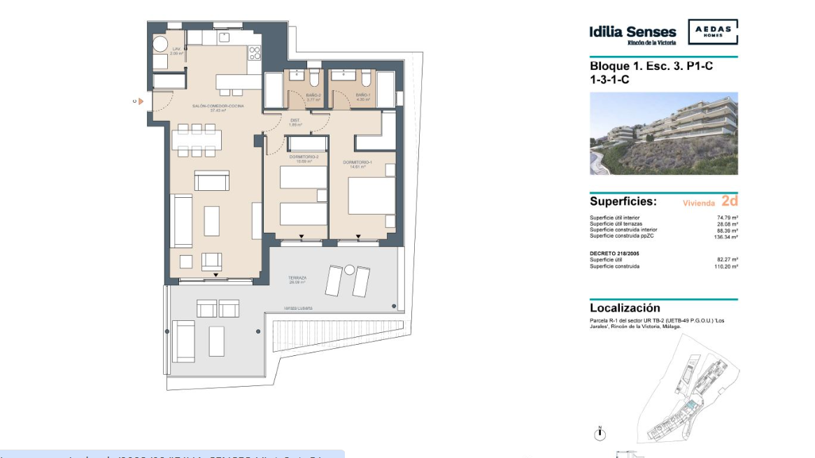 Ce projet résidentiel exclusif se trouve dans un emplacement privilégié à Rincón de la Victoria, offrant des résidences avec de larges terrasses et des vues exceptionnelles sur la mer Méditerranée. Il comprend 41 habitations orientées au sud et sud-est, toutes équipées de 2 chambres, conçues pour offrir un maximum de confort et de sophistication. Chaque unité inclut un garage et une cave, garantissant tout le confort nécessaire pour un mode de vie moderne, avec des prix variant entre 510 000 € et 520 000 € et une surface de 96 m² à 110 m².