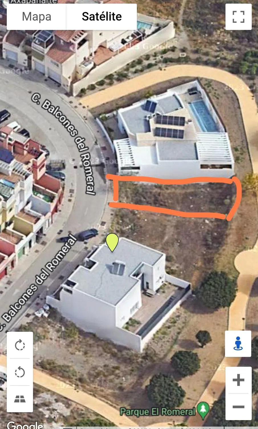 Si ves el anuncio es que sigue a la venta. 174 m2 de terreno para casa adosada de 382,05m2 de techo construido. 2 fachadas externas y opuestas, 7ml en acceso principal de calle, y 9,5ml en acceso peatonal por el parque. Tiene Proyecto Básico (hay que pagarlo aparte al arquitecto). Destacan los 2 accesos independientes por patio inglés, a dependencias del semisótano. Las mejores vistas en invierno y verano. Cota más alta de la Urbanización Cerro del Romeral, en calle Balcones del Romeral 36. Sólo contesto llamadas o WhatsApp. La urbanización tiene acceso libre, se puede visitar sin problema. Orientado Sur, sin edificios delante. En coche a 5 min de playa, 3 min del próximo Hospital Privado, 1 min del Colegio, 5 min del próximo Mercadona. Parque y zona ajardinada a pie de chalet. Para ubicación exacta mirar las fotos. Para detalles técnicos, precios del Proyecto Básico y modificaciones, contactar con el arquitecto Javier Gámez, su teléfono está en el video adjunto.