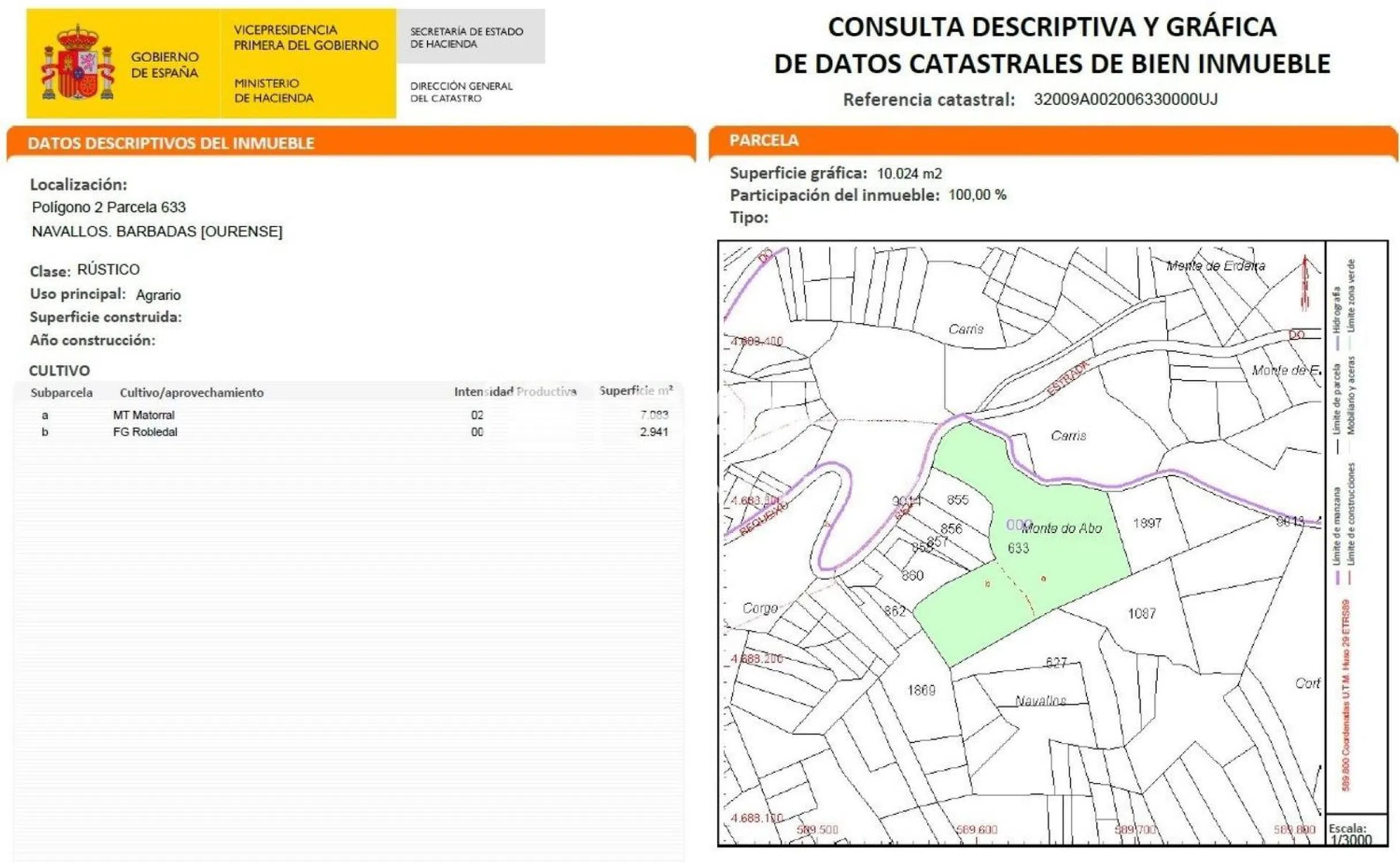 ¡Oportunidad única en Santa Uxía, Barbadás! Se vende espectacular finca rústica de 10.014 metros cuadrados, ubicada en la pintoresca ladera sur del río Miño. Este terreno combina la belleza natural del matorral con la majestuosidad de un robledal, ofreciendo un entorno idílico para quienes buscan tranquilidad y contacto directo con la naturaleza. A tan solo 9 minutos en coche del centro de Ourense capital, disfrutarás de la comodidad de la cercanía urbana sin renunciar a la paz del campo. Aunque no urbanizable, su localización en núcleo urbano abre un abanico de posibilidades para proyectos agrícolas o recreativos. ¡No dejes pasar esta oportunidad! Para más información, contacta con nosotros.