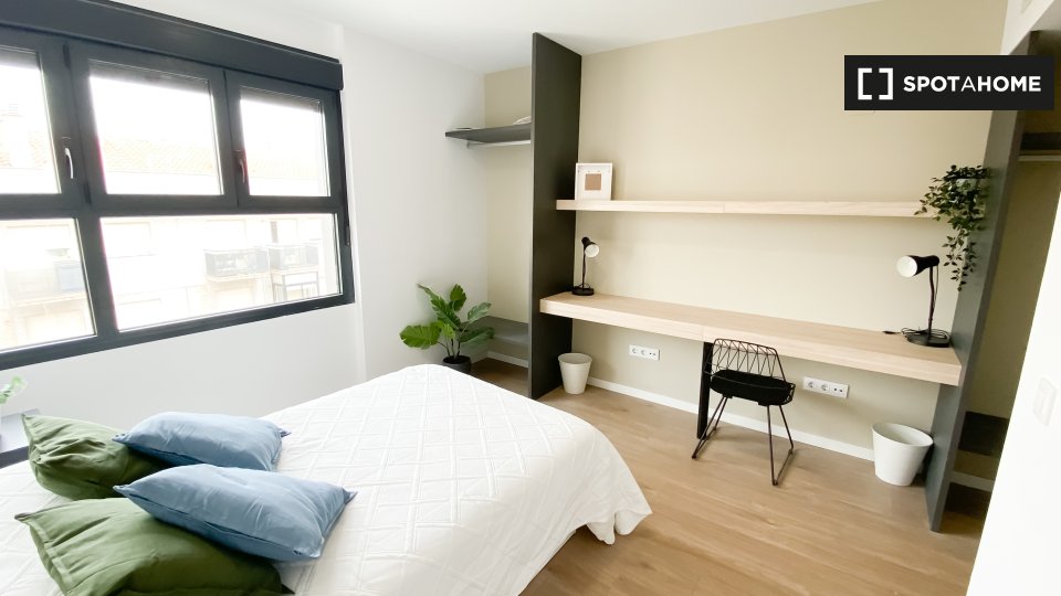 Chambre individuelle avec salle de bain privée et kitchenette dans un logement étudiant à Salamanque. Vous apprécierez ce studio et les espaces communs adaptés pour vous concentrer sur vos études et profiter au maximum de vos heures de travail.