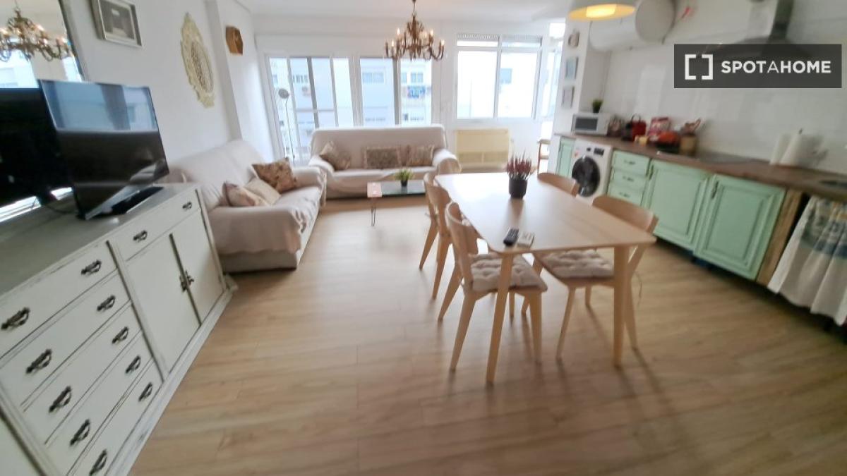 Des chambres sont disponibles à la location dans cet appartement de 70 m² récemment rénové à Triana. L'appartement comprend un salon avec canapé et table à manger, ainsi qu'une télévision à...