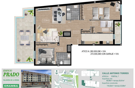 EL LUJO DE VIVIR EN EL CENTRO - VIVIENDAS DE LUJO DE 2, 3, Y 4 DORMITORIOS.Viviendas en planta totalmente exteriores dotadas de las mejores calidades del mercado tales como instalaciones completas de calefacción a gas natural y aire acondicionado, carpinterías exteriores de aluminio con rotura del puente térmico, carpinterías interiores lacadas en blanco, suelos de parquet/tarima de roble, azulejos de tipo porcelánico, armarios empotrados forrados, cocinas amuebladas y semi-equipadas, etc.. .NO DUDE EN VISITAR NUESTRA PROMOCION y podrá comprobar que su situación es inmejorable, en pleno centro de Talavera de la Reina, junto a la zona comercial, casco viejo y jardines del Prado.OBRA EN CONSTRUCCIÓN.