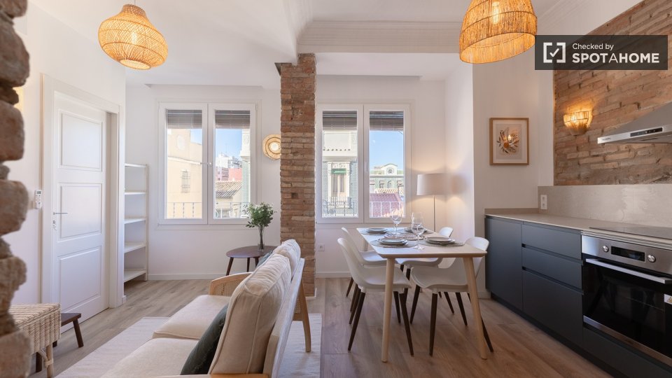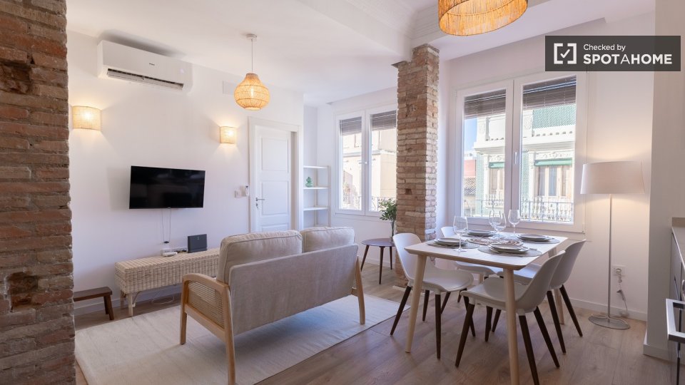 Ce magnifique appartement meublé de 2 chambres à Cabanyal-Canyamelar attend son prochain locataire. Il comprend notamment une cuisine équipée et une télévision. Tous les logements Spotahome sont vérifiés, et celui-ci a été personnellement inspecté par un expert Spotahome, vous garantissant ainsi une entière satisfaction. Cette location est idéale pour les jeunes actifs, les étudiants et les couples.