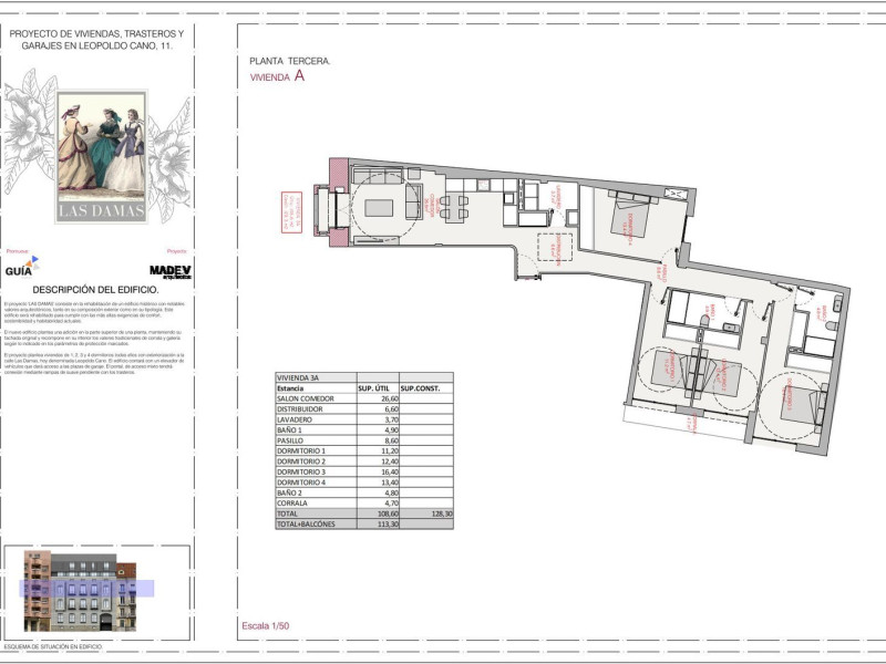 En la actual calle de Leopoldo Cano, antes de LAS DAMAS, en el número 11, se levanta el edificio que será objeto de esta rehabilitación parcial, manteniendo su fachada original pero absoluta...