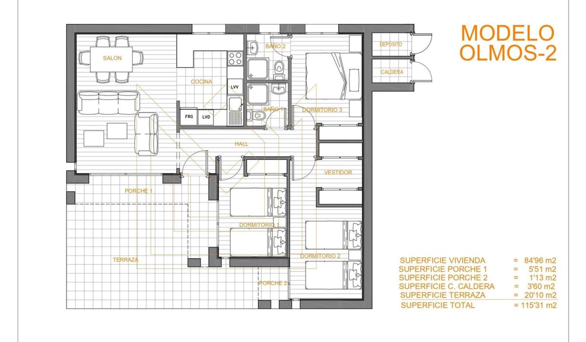 Se vende bungalow, dúplex con terraza de 60 M2. Planta baja: Salón comedor con c...