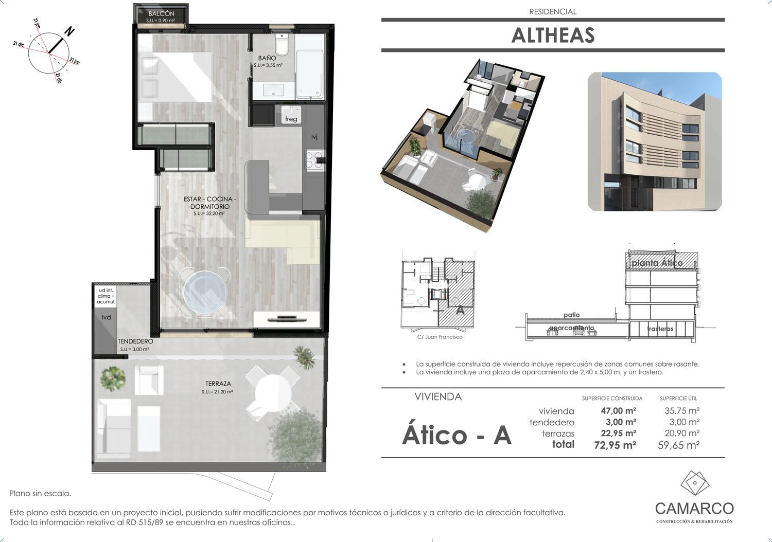 Licencia de Obra Concedida para la construcción de edificio de 7 viviendas con garaje, trastero y jardín.Pisos y áticos de 1 y 2 dormitorios con terraza, garaje y trastero.La ubicación es inmejorable, con el metro de Oporto a 240 metros y muy cerca de supermercados, instituto, Conservatorio Superior de Danza, centro de salud y Hospital Gómez Ulla.Cuenta con calificación energética A en emisiones, Aerotermia con suelo radiante refrescante para climatización y sistema de ventilación mecánica.
