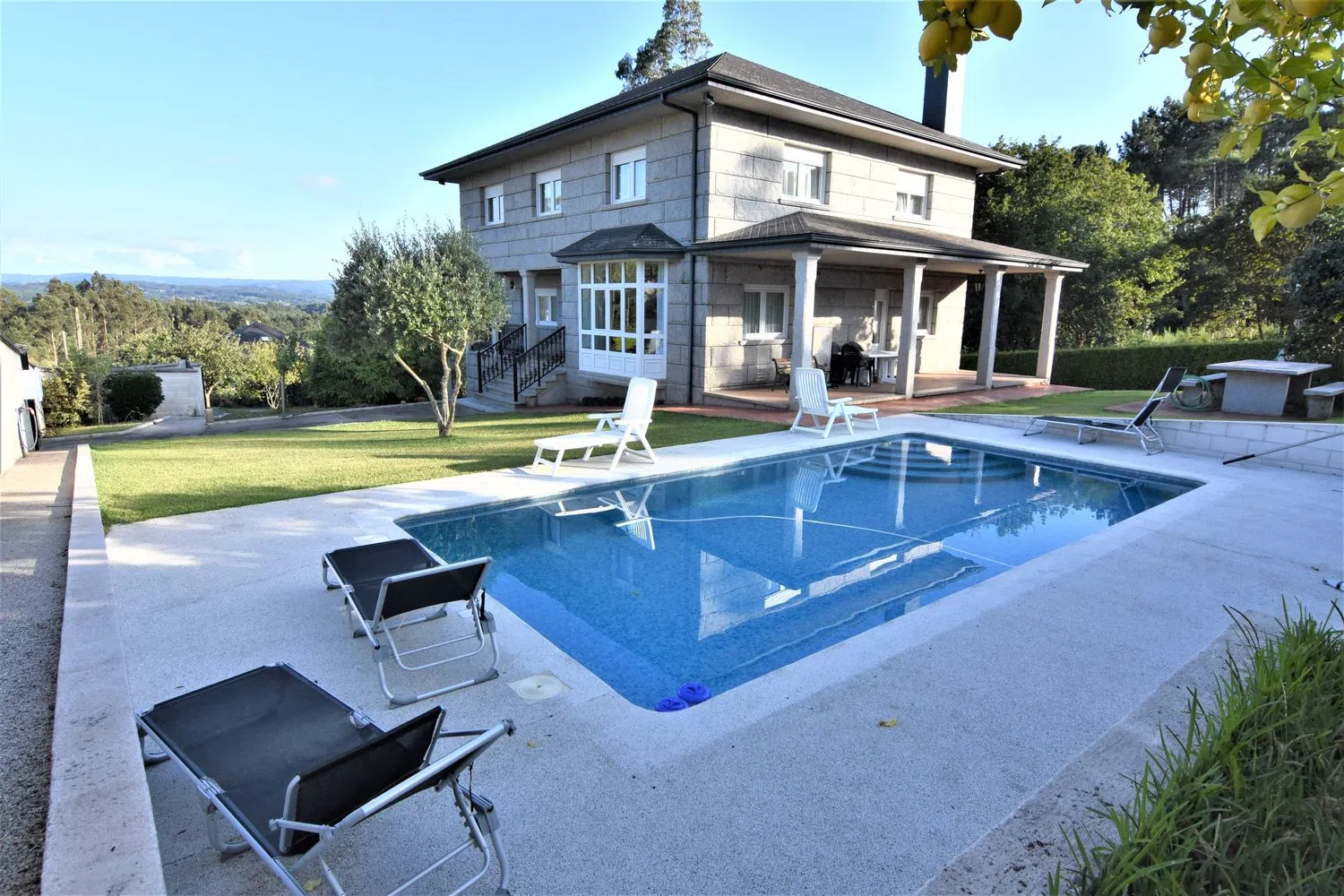 Ref. -1266 Casa en venta en Guísamo. La casa dispone de 392 m2 distribuidos en: planta sótano con garaje para 8 coches, baño, sala de calderas y lavandería, planta principal compuesta por un gran salón, cocina amueblada con salida a un porche, dormitorio y un baño, primera planta con tres dormitorios, un baño y otro dormitorio con vestidor y baño incorporado. La finca de 2200 metros dispone de piscina. Está ubicada en una zona tranquila pero bien comunicada. Tiene pozo y agua de traída. Fosa séptica. Calefacción y agua caliente por gasoil. EXCELENTE CONSTRUCCION. INMOBILIARIA ATICO TLF 881899322.