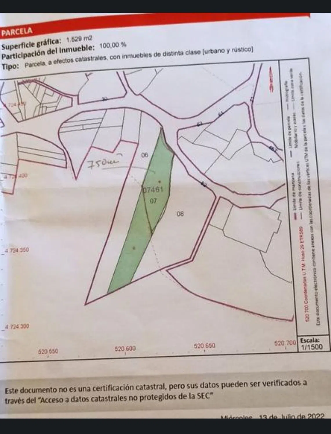 Minimale verkoopperceel1 529 m²