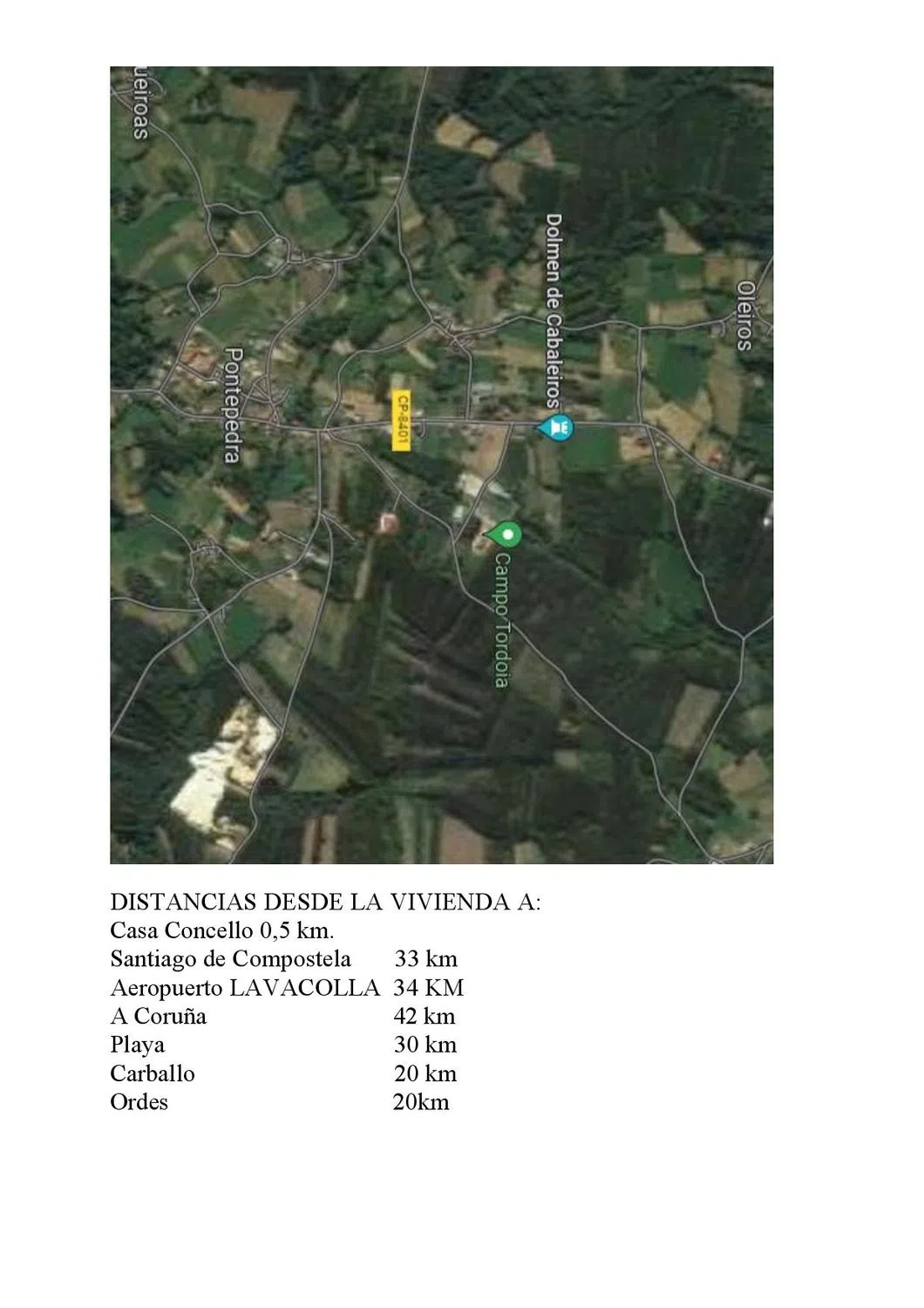 Parcela 20.000 m2 (3.800 m2 urbanizables y resto rústico) con vivienda (232 m2), cuadra (195 m2), horreo y otros. Frente de 95 metros a carretera DIPUTACIÓN. VIVIENDA PARA RESTAURAR. Posibilidad de hacer 3 0 4 parcelas urbanizables. Centro pueblo a 0,5 km. Santiago de compostela 33 km, Aeropuerto 34 km, A Coruña 42 km, Ordes 21 km.