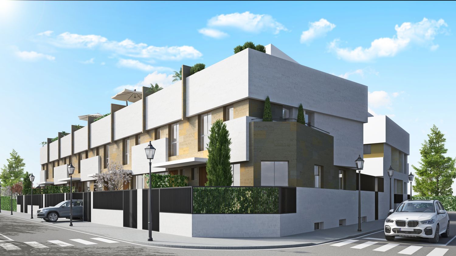 Se trata de un gran residencial compuesto por 15 viviendas unifamiliares adosadas con piscina comunitaria, . Las tipologías de viviendas disponen de Salón-comedor orientada a fachada principal, cocina con posibilidad de isla, 4 dormitorios, 3 cuartos de baño, 2 patios, bodega y garaje.