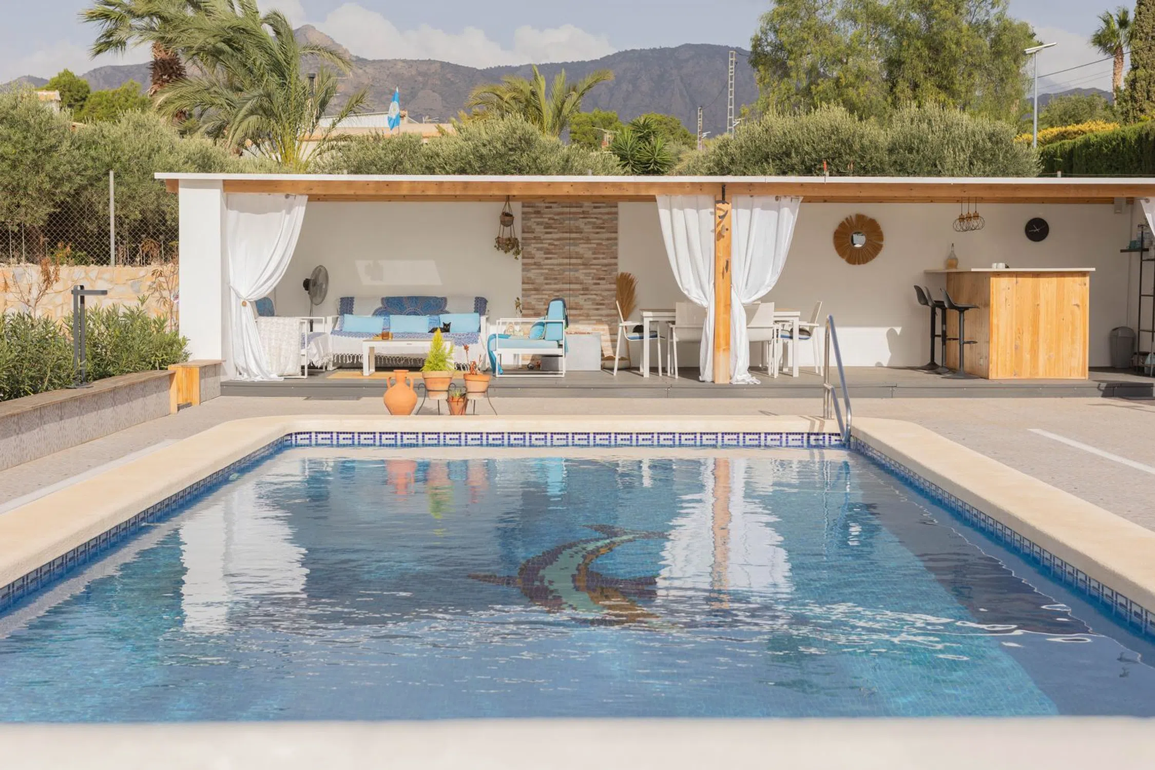 Exclusivo Bungalow Moderno en Albatera – Tranquilidad, Privacidad y Confort Descubra este impresionante bungalow moderno en la prestigiosa y tranquila zona de Albatera. Ubicado a solo 15 minutos de Elche, 25 minutos del aeropuerto de Alicante y 30 minutos de la costa, esta propiedad ofrece el equilibrio perfecto entre serenidad y accesibilidad. Características de la Propiedad ✔ 3 amplios dormitorios y 2 baños – Incluye una espectacular suite principal con baño privado. ✔ Salón-comedor espacioso y luminoso – Con una acogedora chimenea de leña, perfecta para relajarse y disfrutar. ✔ Cocina totalmente equipada – Con electrodomésticos modernos, amplio espacio de almacenamiento y despensa. ✔ Luminoso invernadero con puertas corredizas – Ideal para disfrutar del sol invernal con vistas al jardín. ✔ Jardín exquisitamente diseñado con piscina privada – Un oasis de tranquilidad para disfrutar todo el año. ✔ Encantadora casa junto a la piscina – Un espacio acogedor para relajarse en cualquier estación. ✔ Apartamento de invitados completamente equipado – Con salón, dormitorio, baño y cocina propia. Ubicación Privilegiada y Servicios - Situado en un entorno natural y tranquilo, con total privacidad. - Excelentes servicios en Albatera, que incluyen un centro de salud 24 horas, gimnasio, piscina cubierta, supermercados y tiendas. - Prestigiosas opciones educativas, con servicio de autobús hacia la British School de Alicante. Extras - Dos accesos a la propiedad, uno de ellos con portón eléctrico. - Amplia zona de aparcamiento para varios vehículos. Este exclusivo bungalow combina lujo, confort y una experiencia de vida inigualable en un entorno natural y sereno. ¿Está buscando un hogar moderno y elegante donde pueda disfrutar de la paz, el espacio y la privacidad? Contáctenos para más información o una visita.