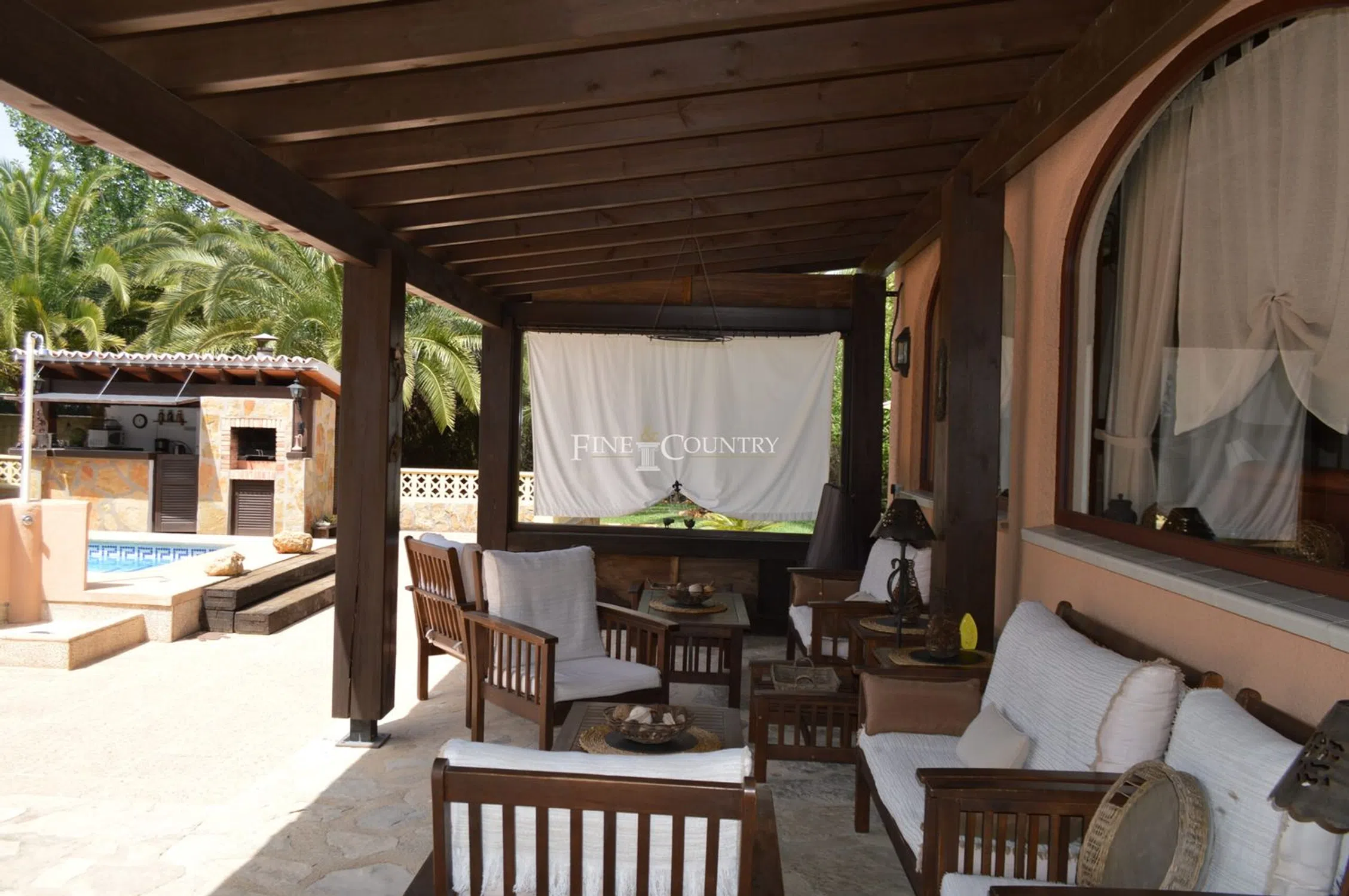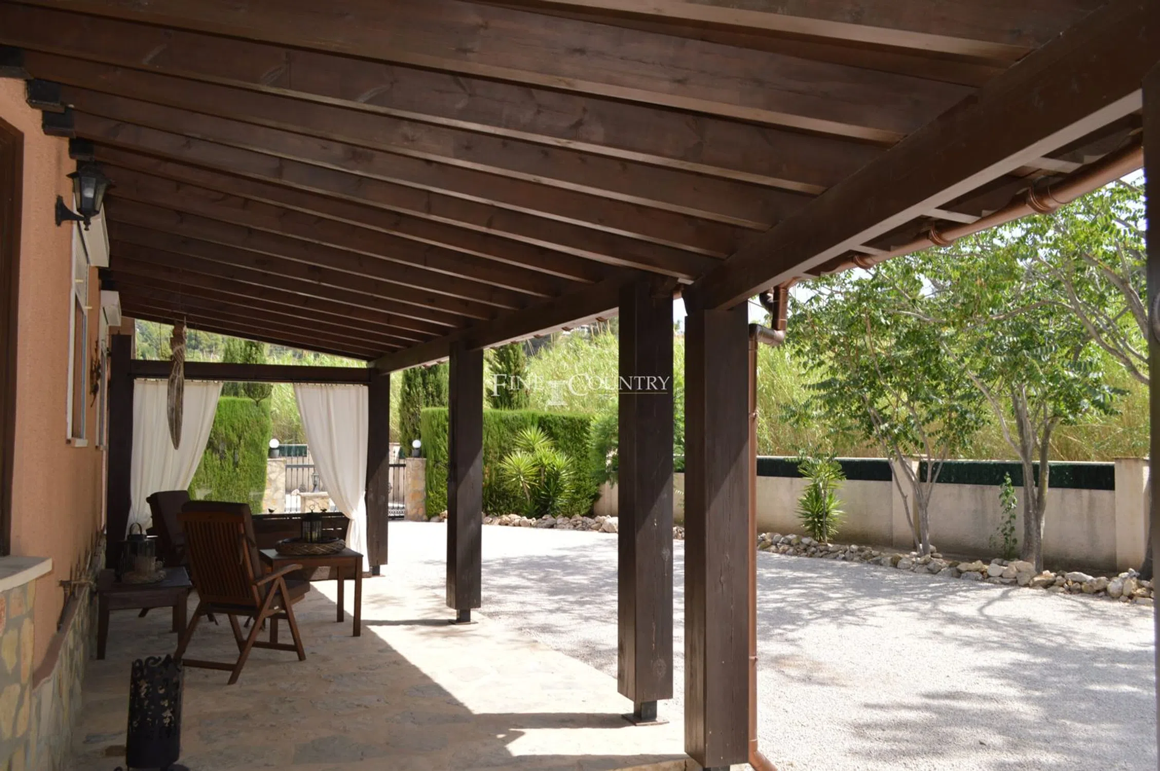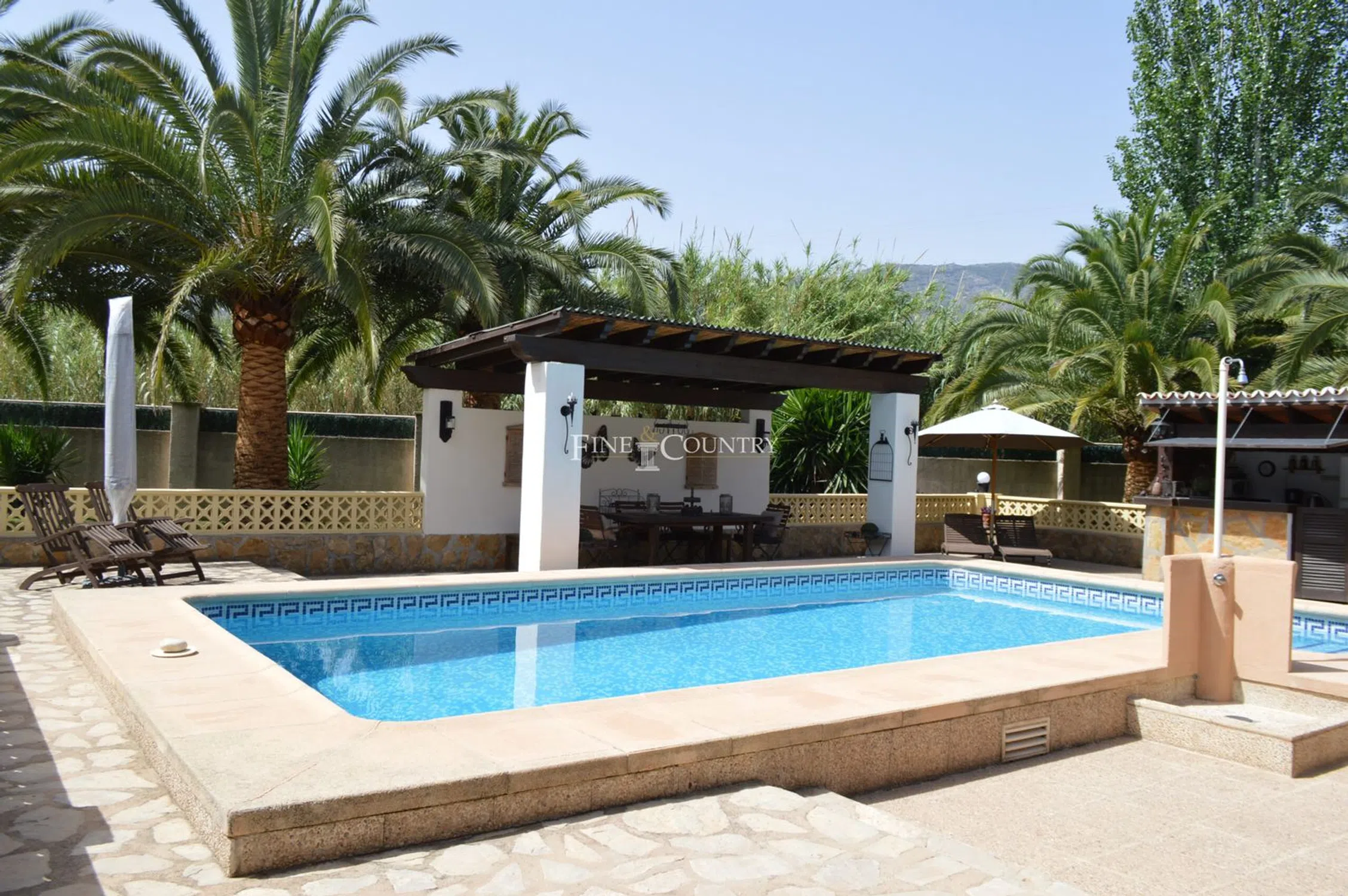 Casa de campo de estilo rústico situada en una parcela completamente privada y llana de 2.397m² con orientación sur, a pocos pasos del encantador pueblo de Alcalalí. La casa principal cuenta con una espaciosa naya semicircular cubierta de 70m², que da a un acogedor salón con techos altos con vigas de madera, ventanas destacadas, arco de piedra de Tosca, pared de piedra vista, chimenea con quemador de pellets y aire acondicionado frío/calor. La cocina totalmente equipada incluye una zona de comedor y se abre a un espacio ajardinado ideal para comer al aire libre. En la planta baja hay un dormitorio doble con baño con ducha, una habitación adicional que actualmente se utiliza como dormitorio con acceso al jardín y un baño familiar. Arriba hay una gran suite principal con aire acondicionado y una ducha esquinera de planta abierta. Un chalet de invitados independiente ofrece un dormitorio doble y una zona de descanso. Los maduros jardines mediterráneos son excepcionalmente privados e incluyen una piscina de 8x4m, terraza para tomar el sol, ducha exterior, pérgola de madera, cocina de verano con barbacoa integrada y WC separado. Las características adicionales incluyen calefacción central de gas, garaje doble con trastero, área de servicio exterior, camino de entrada automático con puerta y cochera, amplio aparcamiento fuera de la carretera, palmeras y árboles frutales, y una parcela de terreno adicional con puerta. Una propiedad única y encantadora en un entorno tranquilo: se recomienda una visita anticipada.
