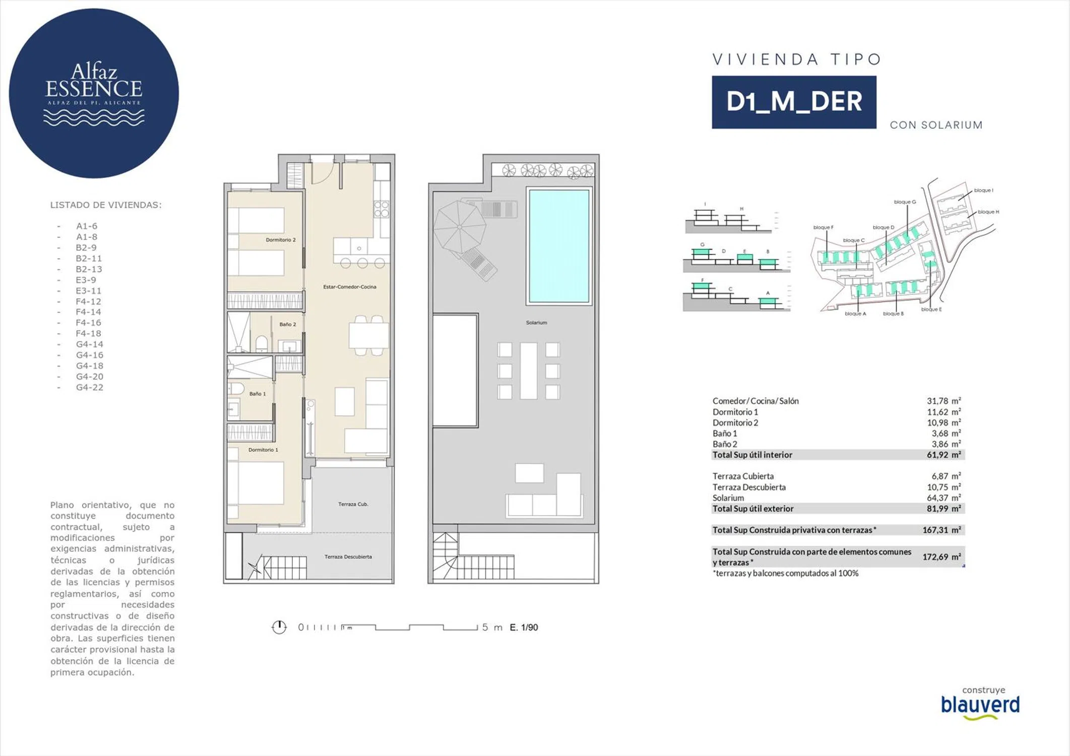 Descubre Alfaz Essence, una increíble promoción de apartamentos en Alfaz del Pi, donde la luz del Mediterráneo, la naturaleza y el mar se encuentran en equilibrio. Ubicado en una zona elevada, Alfaz Essence ofrece un entorno tranquilo y cuidado, ideal para quienes valoran el bienestar. Cada una de las 123 viviendas está diseñada para el máximo confort, con amplias terrazas, zonas ajardinadas y acceso a una piscina comunitaria. Dentro de estas modernas viviendas, encontrarás espacios bien aprovechados, con salones de cocina abierta y grandes ventanales que inundan el interior de luz natural. Se ofrecen opciones de 1, 2 y 3 dormitorios, predominando las de dos dormitorios, diseñadas para adaptarse a cualquier estilo de vida: como primera residencia, casa de vacaciones o un espacio cómodo para teletrabajar. Las zonas comunes de Alfaz Essence suman calidad de vida, con una piscina comunitaria y espacios ajardinados que conectan los distintos bloques. Además, dispone de una zona de parque infantil y plazas de garaje, asegurando comodidad y seguridad para toda la familia. Situado entre el mar y la montaña, Alfaz Essence está a pocos minutos de las playas de El Albir y Altea, así como del parque natural de Serra Gelada. La ubicación ofrece fácil acceso a supermercados, colegios y centros médicos, además de una vibrante comunidad internacional. Para los deportistas, la zona cuenta con una oferta inmejorable, desde clubes deportivos hasta rutas de senderismo y ciclismo. Con una excelente conexión a Benidorm y otros servicios, Alfaz Essence es tu oportunidad de empezar una nueva vida, rodeado de confort y belleza.