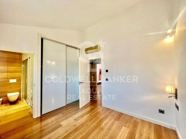 Op de begane grond is er een eigen garage, met directe toegang tot de woning, wat het parkeren vergemakkelijkt en toestaat een deel van de ruimte als opslagruimte te gebruiken. Het hoofdniveau biedt toegang tot de gemeenschappelijke ruimtes van de urbanisatie, die een zwembad en paden omvatten, naast een aparte keuken die volledig is ingericht en uitgerust met apparatuur van topkwaliteit. De ruime woonkamer, die toegang biedt tot een terras ideaal om van de zon en maaltijden in de openlucht te genieten, wordt gecompleteerd met een toilet voor de gasten.